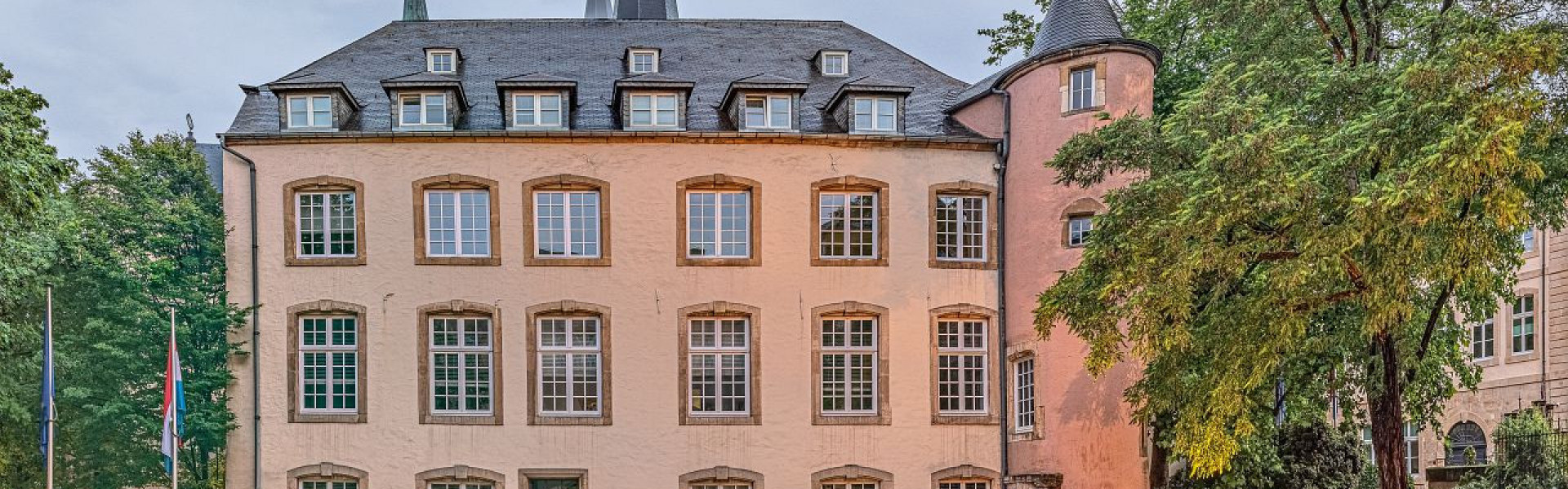 Die Säulen und Spitzbögen am Eingang des Treppenturms, der aus Backstein gebaut und vollständig erhalten ist, sind typische Elemente der Übergangszeit zwischen dem Gotik- und dem Renaissancestil. Es handelt sich daher um eines der ältesten noch erhaltenen Gebäude in Luxemburg.