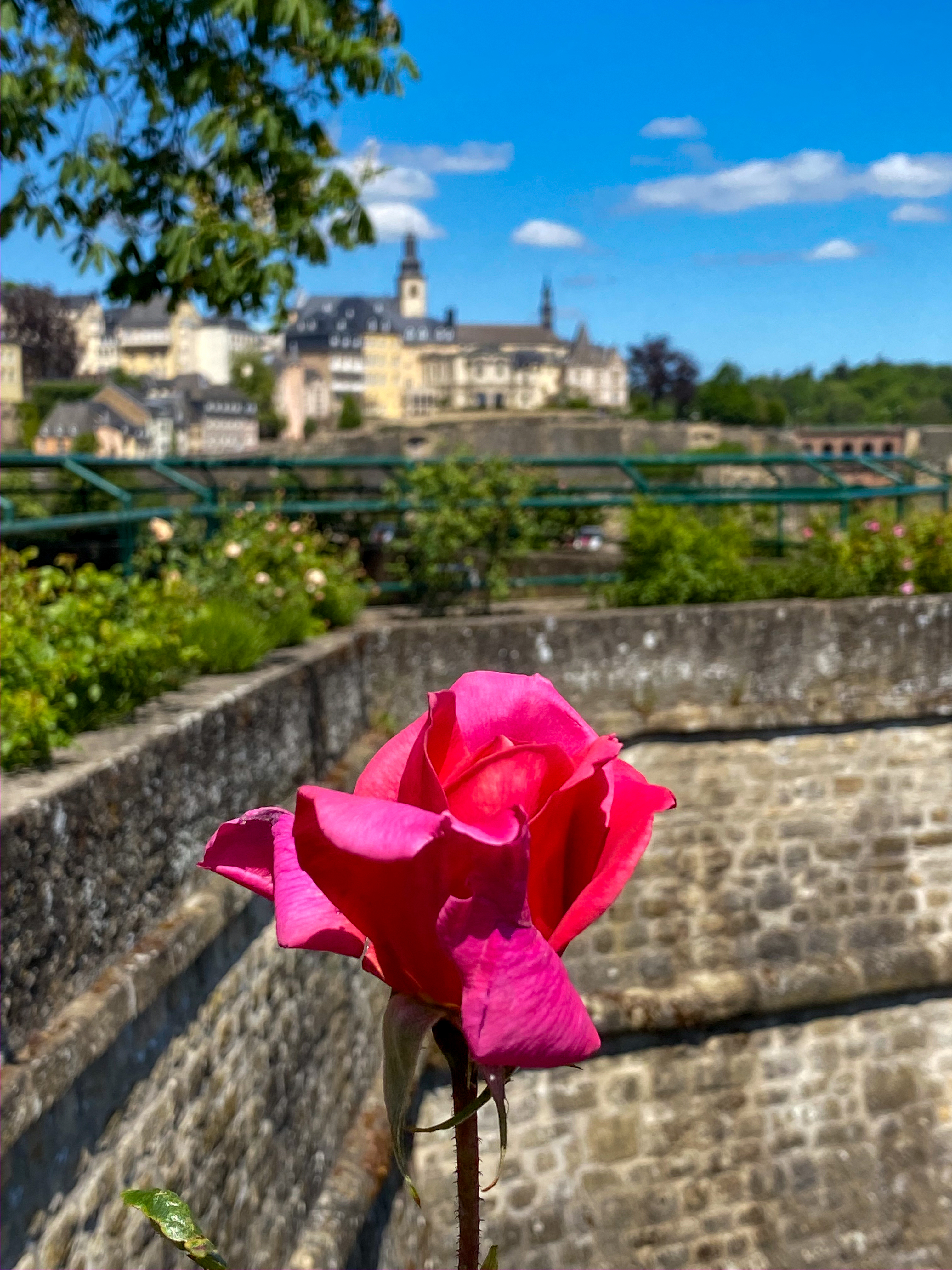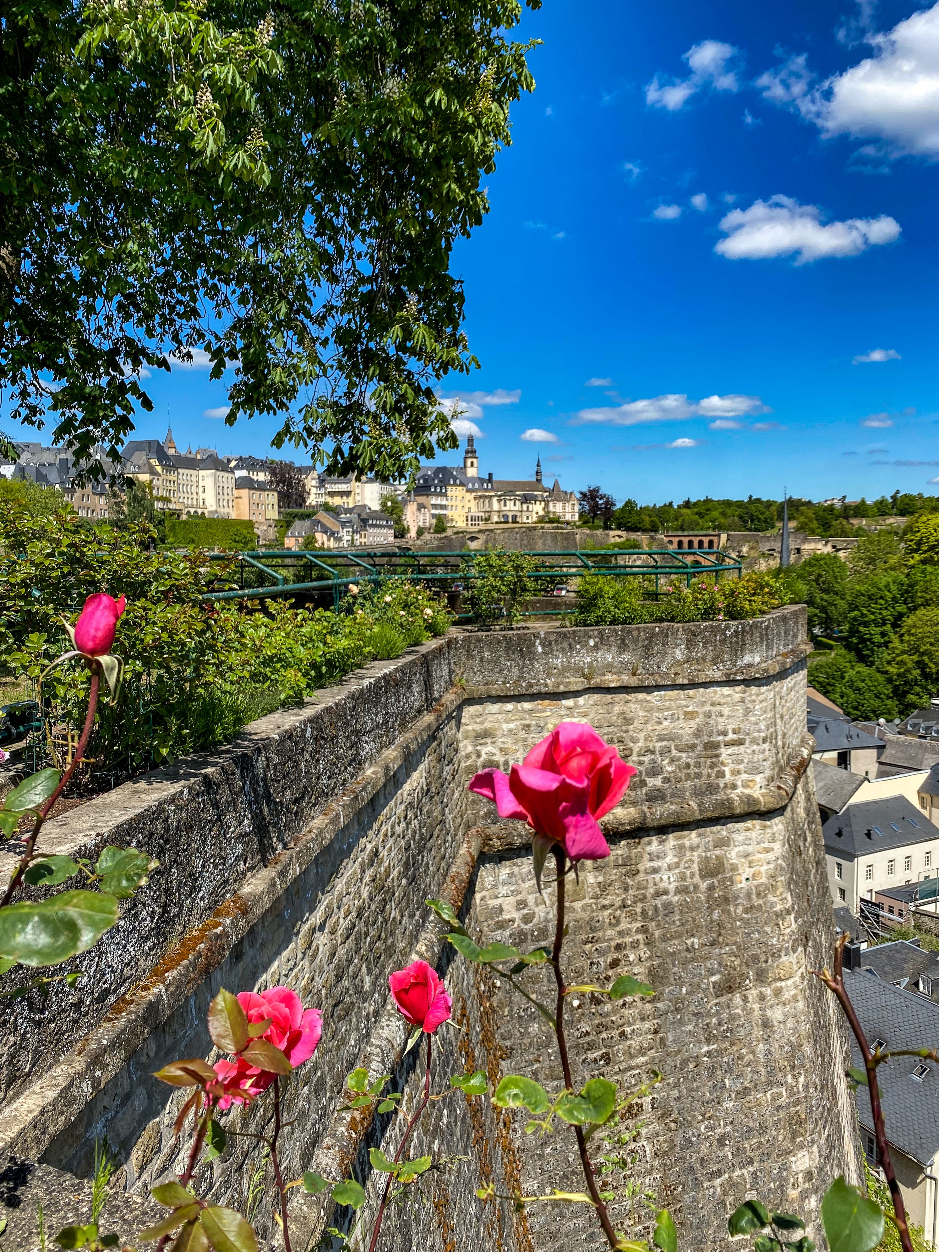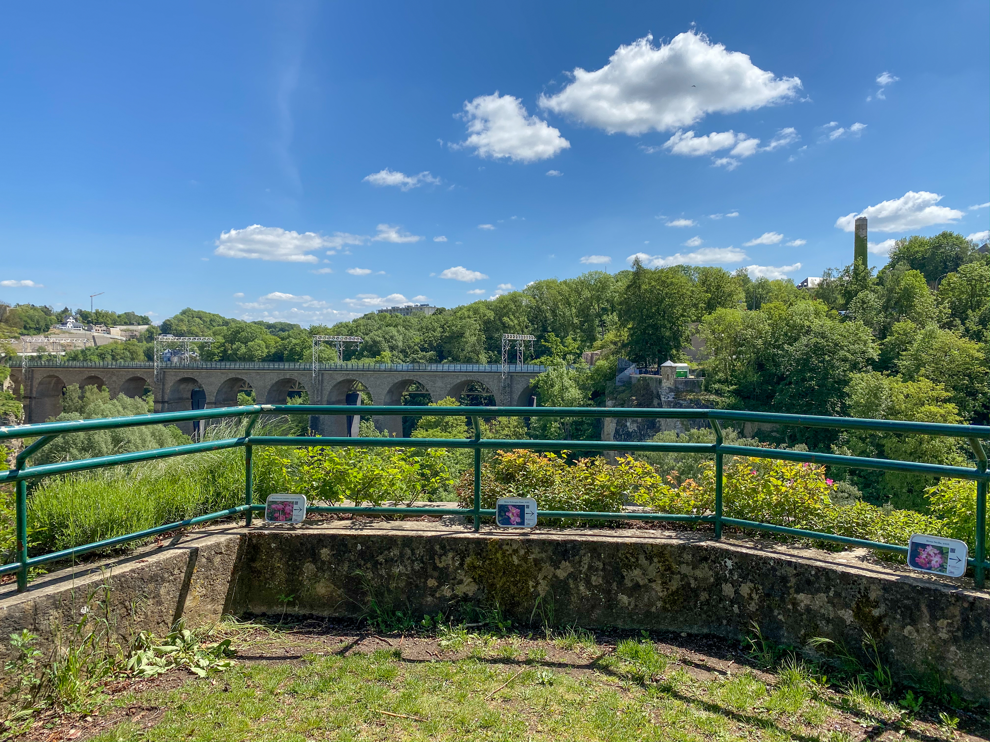 Rousegaart „Op de Rondellen“: der Rosengarten erinnert daran, dass die Stadt Luxemburg während der Belle Époque (Ende des 19. Jh.) bekannt für ihre Rosenzucht war. Die Blumen wurden in die ganze Welt exportiert. Einen besonders schönen Ausblick bietet der Rosengarten im Frühling und Sommer wenn die Rosen blühen.