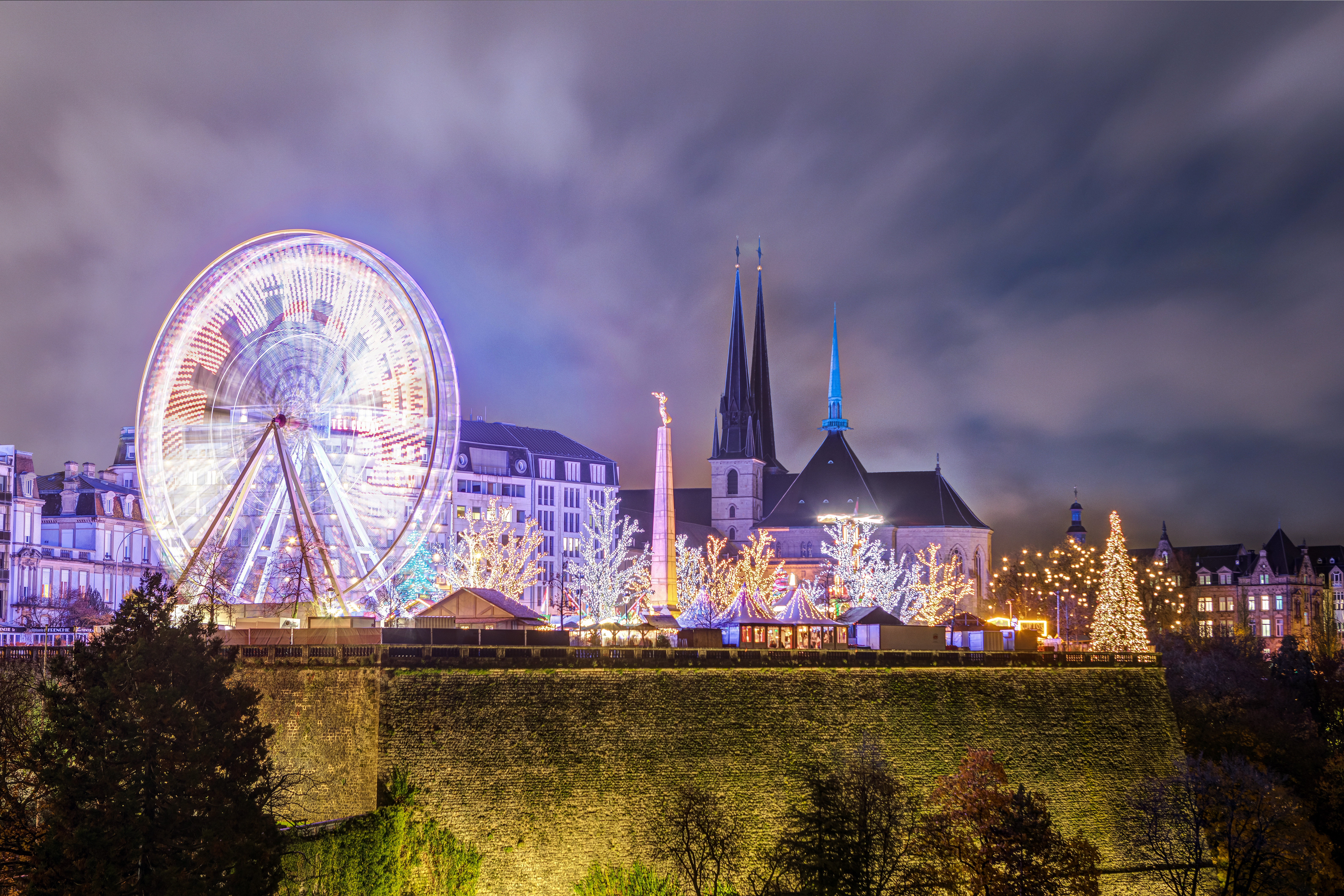 Bei dieser abendlichen Stadtführung entdecken Sie die schönsten Aussichtspunkte der Stadt Luxemburg, umgeben von einer warmen und festlichen Atmosphäre. Genießen Sie Ihren Rundgang durch das Zentrum und das Bahnhofsviertel, vorbei an der Eislaufbahn auf der „Kinnekswiss“ und dem Lichtertunnel am Place des Martyrs. In Begleitung eines offiziellen Stadtführers entdecken Sie während dieser anderthalbstündigen Tour die berühmten Sehenswürdigkeiten und verborgenen Schätze der Festungsstadt. Treffen Sie Ihren Guide vor dem Luxembourg City Tourist Office und beenden Sie Ihre Tour auf dem Weihnachtsmarkt am Place d'Armes, pünktlich zum Afterwork mit Freunden. Am Ende der Führung können die Teilnehmer ein kostenloses Getränk auf dem Weihnachtsmarkt genießen.