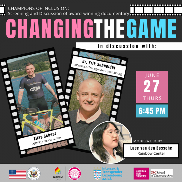 U.S. Embassy Luxembourg, together with Rosa Lëtzebuerg | Rainbow Center and Intersex & Transgender Luxembourg, cordially invites you to a special screening of the American documentary film Changing the Game on June 27, 2024, at the Rainbow Center.