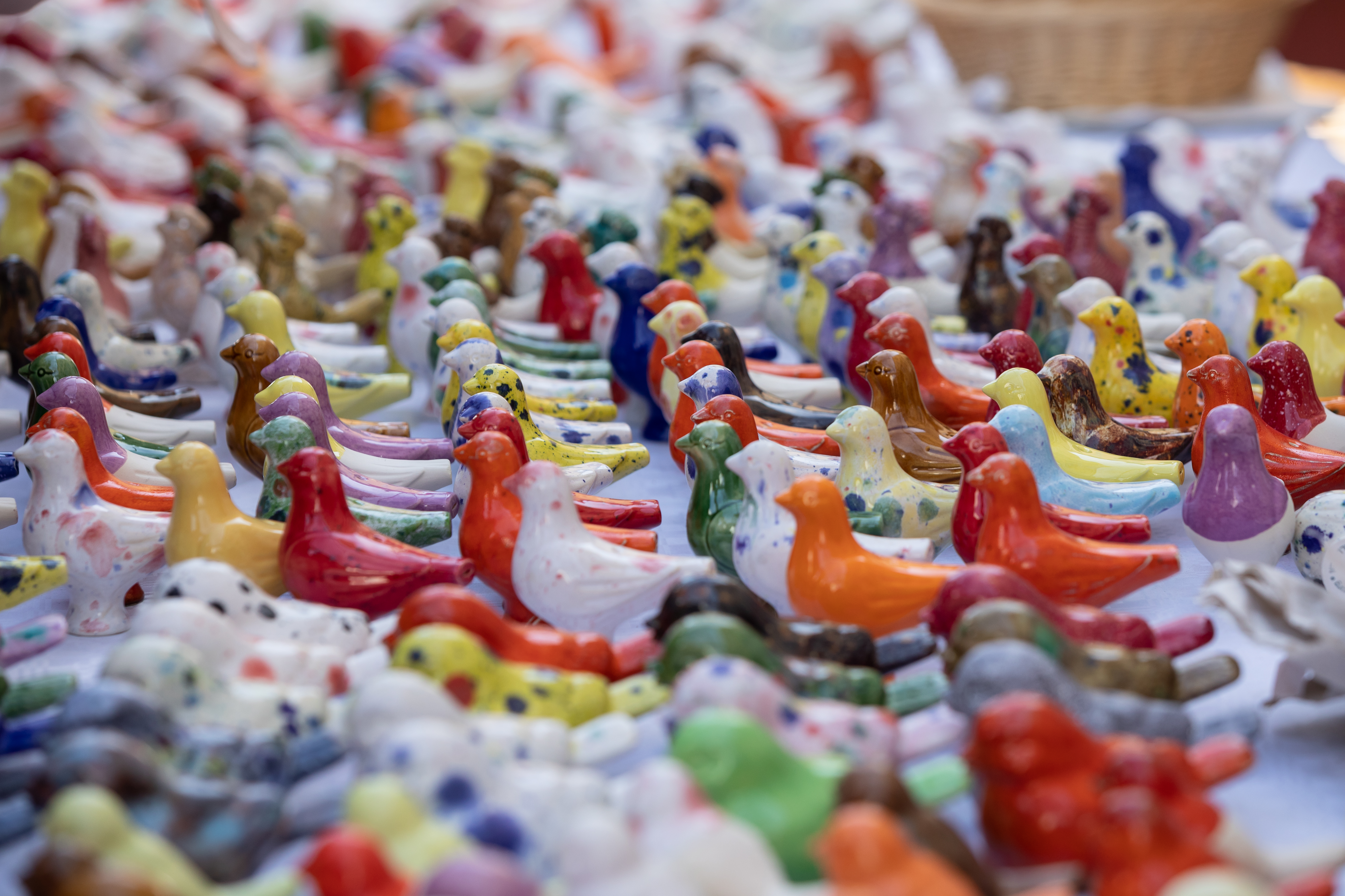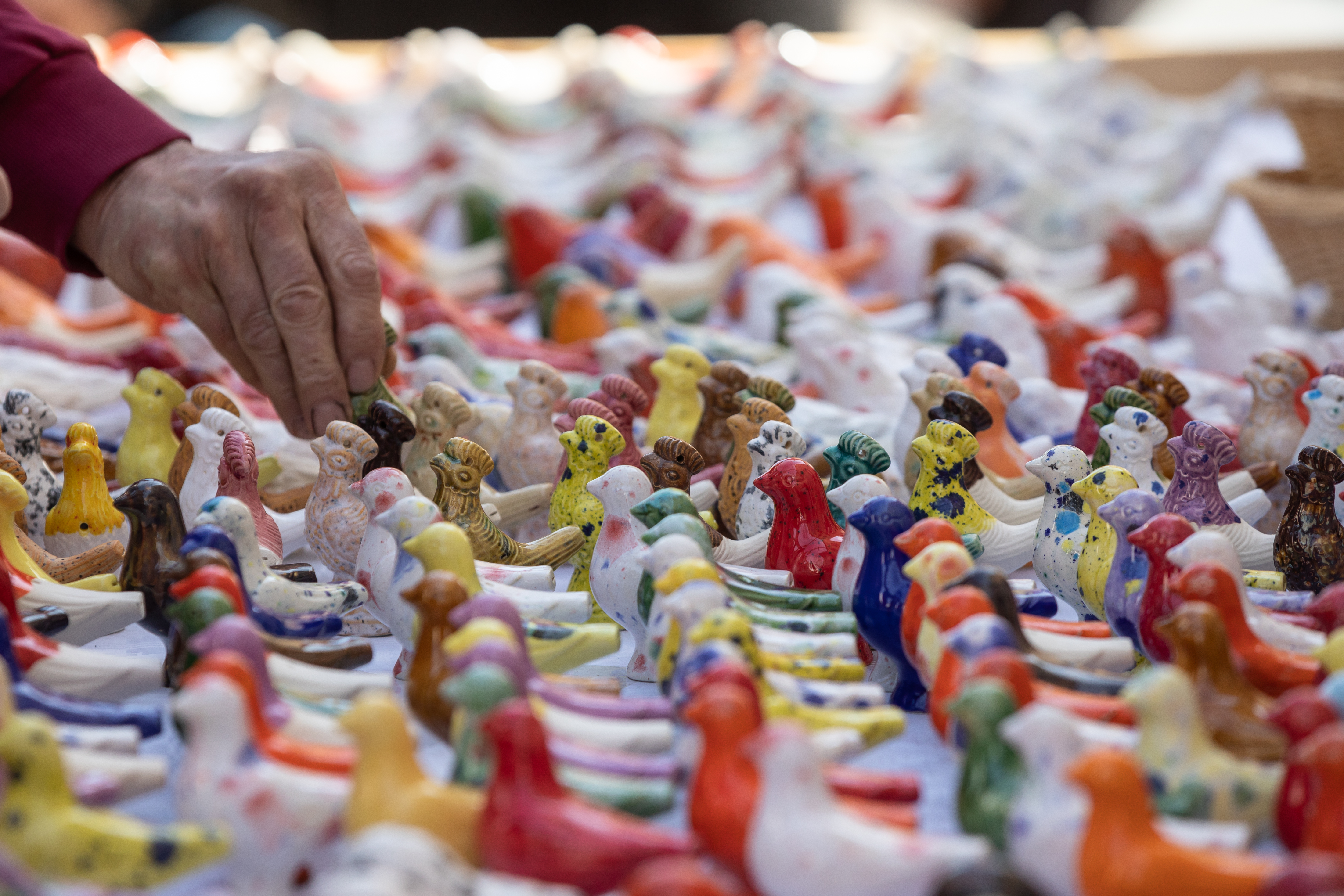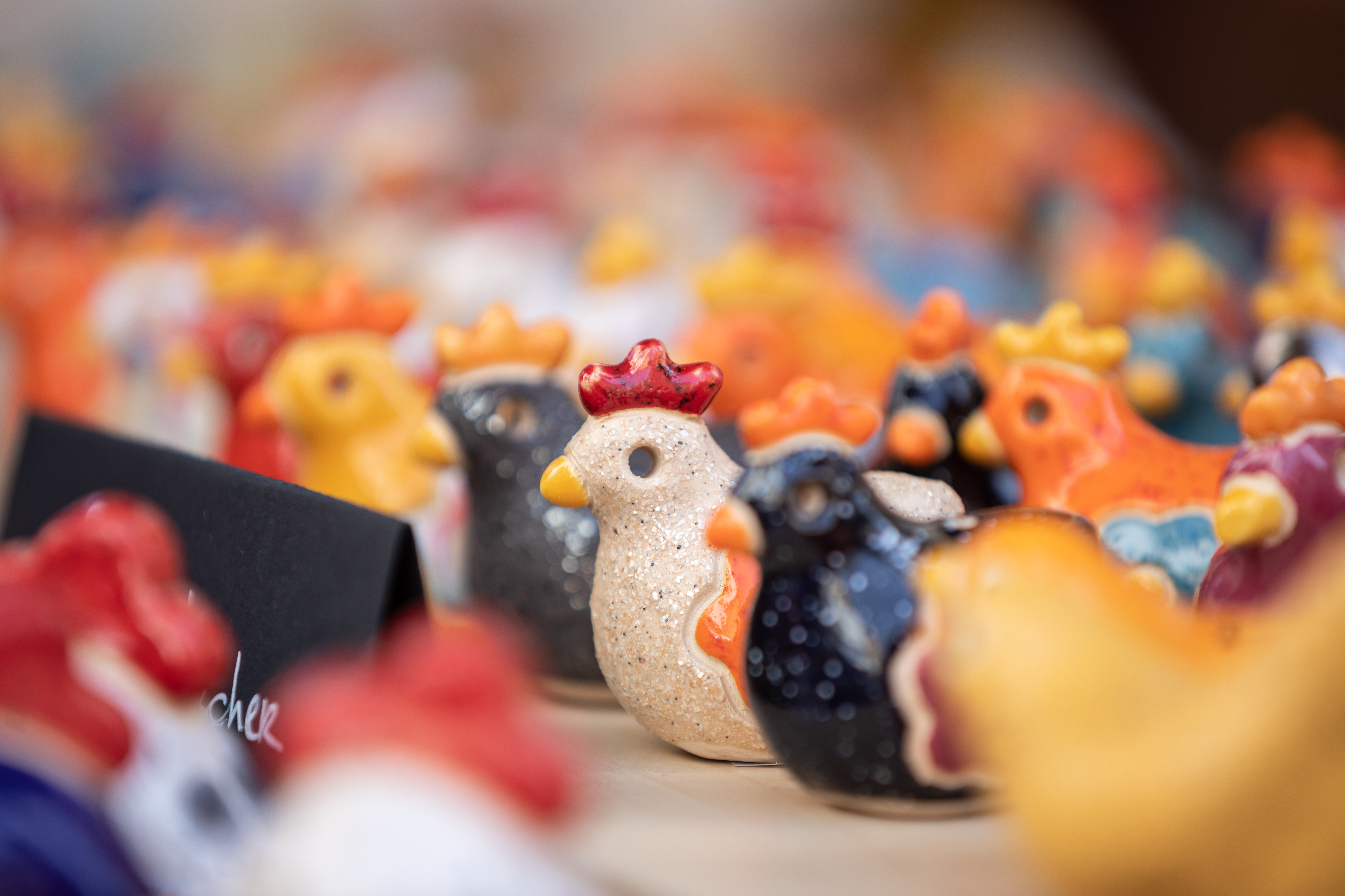 Wie jedes Jahr läutet das Osterfest die Ankunft des Kunsthandwerkermarktes "Éimaischen" ein, einer der symbolträchtigsten Veranstaltungen der luxemburgischen Tradition, die seit mindestens 1827 besteht und sich auf Töpferwaren und Keramik konzentriert. Dazu gehören die berühmten "Péckvillercher", kleine vogelförmige Tonpfeifen, die ausschließlich auf der Éimaischen verkauft werden. Ihr Aussehen variiert von Jahr zu Jahr und macht sie zu begehrten Sammlerobjekten, um die sich die Sammler schon in der Morgendämmerung scharen. Ihre Klänge tragen zusammen mit der volkstümlichen Unterhaltung und den Essensständen zu der besonderen Atmosphäre dieses einzigartigen Marktes bei.