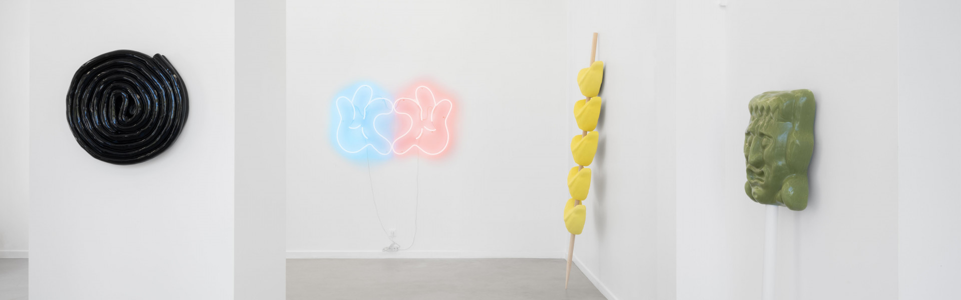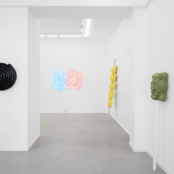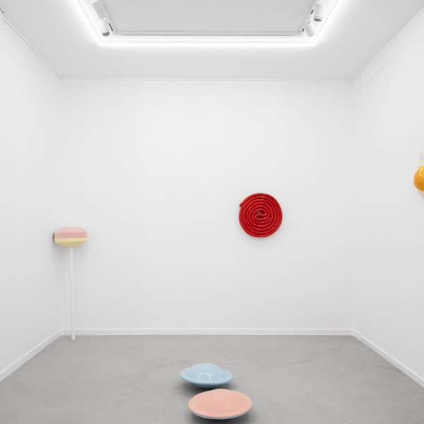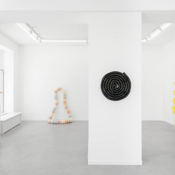 Same Same but Different marks Leo Luccioni’s first solo exhibition at Valerius Gallery, where the Corsican artist (*1994) presents a series of ceramic works inspired by candy. The artist magnifies icons of temptation from the food industry, focusing on candy, with sugar being the first addictive substance, a disguised drug of childhood. These sweets transform into a poetic alphabet of forms and words, revealing the seductive language of consumption, while tapping into childhood nostalgia. Using a soft pastel color-palette, the artist delves into the aesthetics of cuteness, a growing trend in contemporary art. However, this "cuteness" aesthetic serves as a hidden warning, almost like a wolf in sheep's clothing.