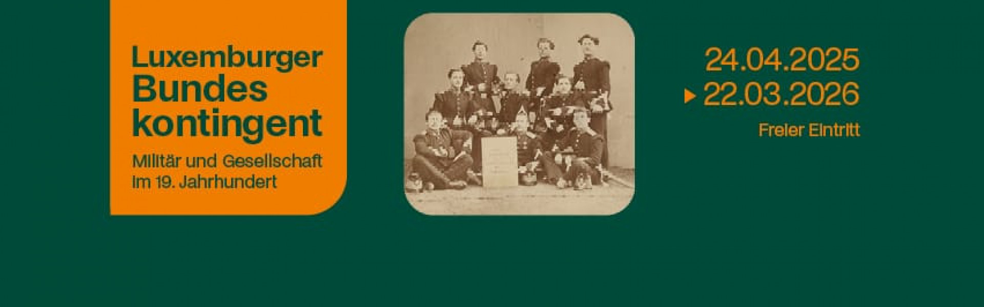 nmitten des von demokratischen Umstürzen und nationalen Kriegen geprägten Europas ist Luxemburgs Landesarmee – das luxemburgische Bundeskontingent – ein genauso vergessenes wie verworrenes Kapitel der Geschichte, die in dieser Ausstellung aufgegriffen und beleuchtet wird. Dabei stehen die Auswirkungen des Militärs auf Politik, Wirtschaft und Gesellschaft im Mittelpunkt: Wie prägten die Rekrutierung, Kasernierung, Versorgung und Ausrüstung der 1.600 Mann starken Truppe den Alltag des Großherzogtums? Exponate aus den eigenen historischen Beständen sowie prestigeträchtige Leihgaben werden in der Ausstellung zusammengebracht und erzählen persönliche Geschichten über die gesellschaftlichen und militärischen Herausforderungen im Luxemburg des 19. Jahrhunderts, wie zum Beispiel die Karriere des Offiziers Louis-Alphonse Munchen.