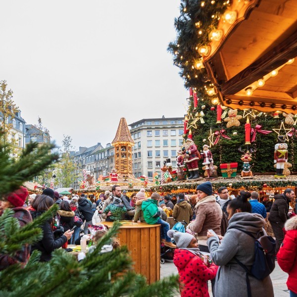 Der Niklosmaart auf der Place de Paris lädt jedes Jahr in der Vorweihnachtszeit zu einem stimmungsvollen Erlebnis ein. In zentraler Lage bieten liebevoll gestaltete Holz‑Hütten süße und herzhafte Köstlichkeiten – von Glühwein über Hamburger, Gromperekichelcher, Suppen, Grillwurst, Waffeln, Churros und Crêpes bis hin zu Bretzeln. Daneben gibt es eine große Auswahl weihnachtlicher Artikel, darunter handgemachte Adventskränze, Dekorationen, Textilien und Spielzeug. Für Kinder und Erwachsene steht ein historisches Kettenkarussell bereit, und auf einer Bühne erwartet Sie ein vielfältiges Musik‑ und Unterhaltungsprogramm.