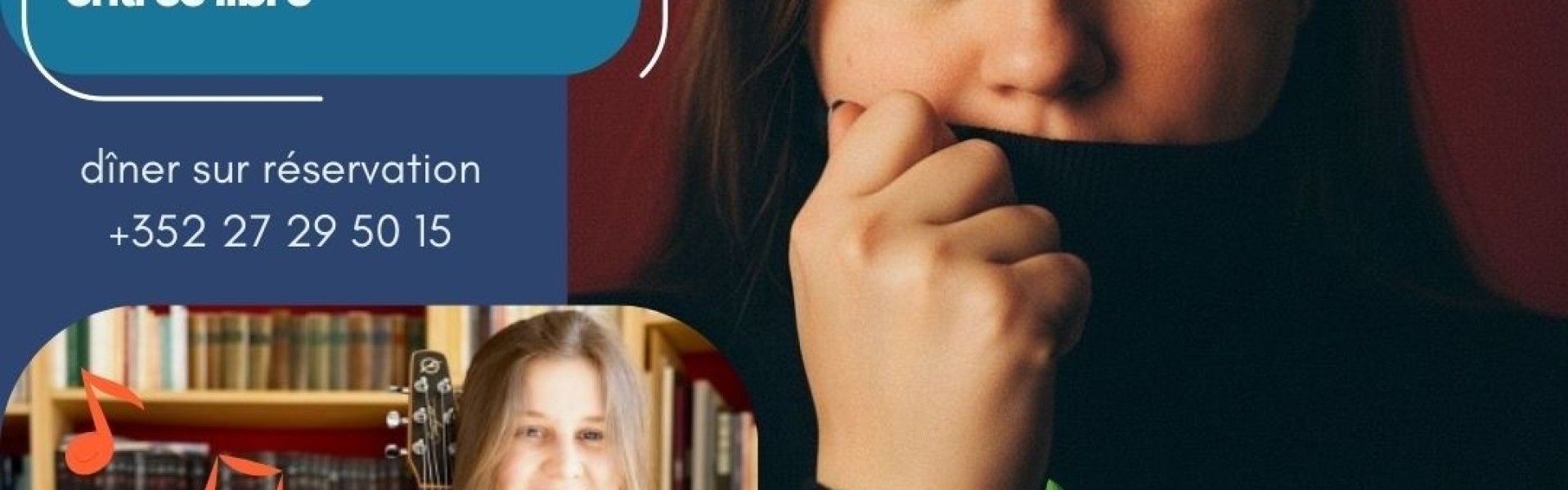 Lesung von Gedichten aus dem Gedichtband „Libère l’oiseau bleu“ (Befreie den blauen Vogel), erschienen im Verlag Phi. Musikalische Begleitung von Blue-ish (Gesang und Akustikgitarre). Anschließend besteht die Möglichkeit, ein Abendessen zu reservieren.