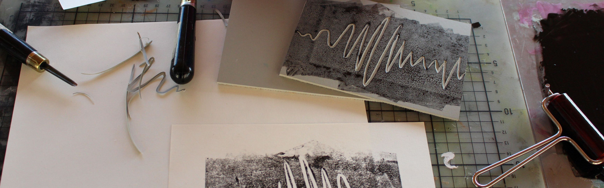 Inspiriert von der Wandmalerei Ghosted in the Shell. von Christine Sun Kim in Boogie, werden wir Musiknoten in Linoldrucke verwandeln. Wie bei Melodien und Rhythmen werden wir Noten, Symbole und Klangwellen in Linoleum gravieren, tuschen und auf Papier drucken. So werden wir gemeinsam beobachten, wie Musik Gestalt annimmt und sich in eine visuelle Komposition verwandelt.
