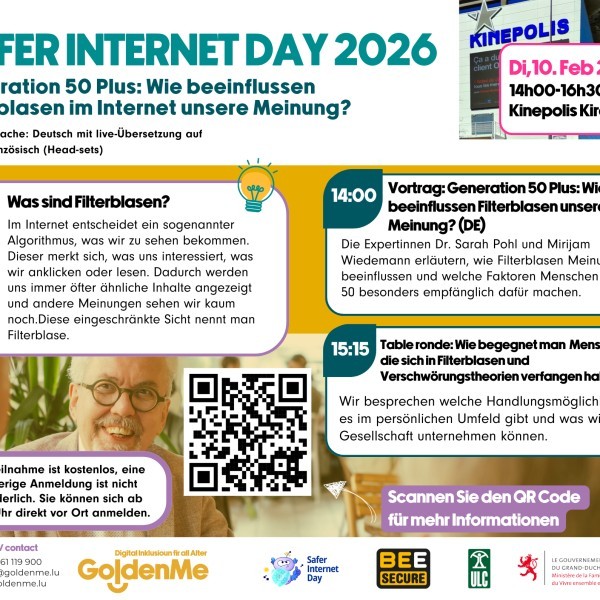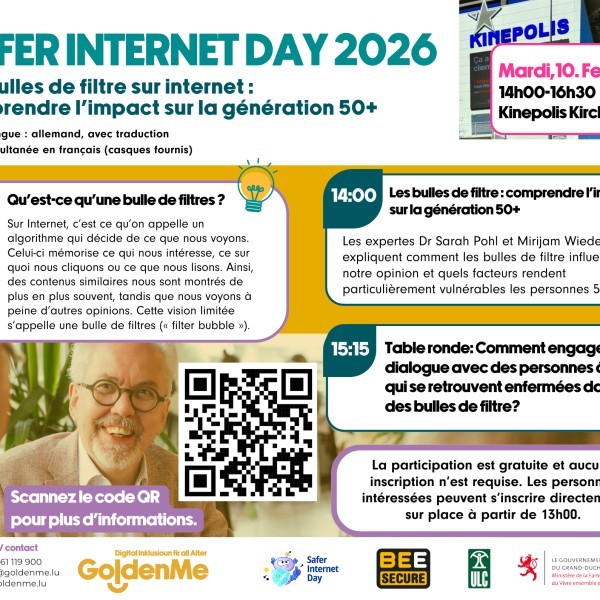 In Zusammenarbeit mit BEE SECURE und dem ULC organisiert GoldenMe den Safer Internet Day am 10 Februar 2026 im Kinepolis Kirchberg.