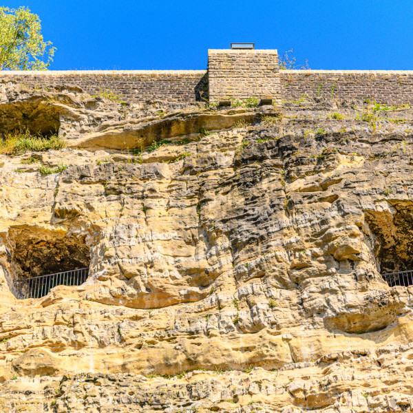 Surrounded on three sides by the Alzette valley and accessible only from the west, the stronghold proved easy to defend. Inside the rock, the visitor finds the other historic monuments as the archeological crypt as well as casemates of the Bock, formerly used as underground defence galleries.