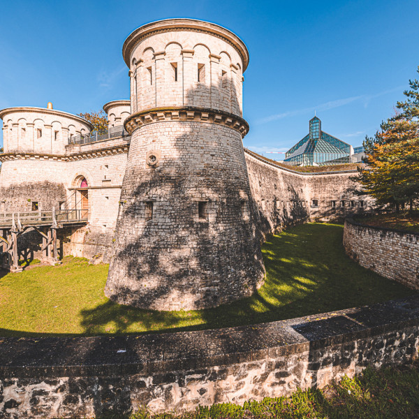 In 1870 and 1874 it was demolished: only the three round towers, the so-called Three Acorns, and the foundation walls, uncovered in 1991, remained in good condition. Here are also the “Musée d’Art Moderne Grand-Duc Jean”, built after the plans of the Sino-American architect Ieoh Ming Pei and the "Musée Dräi Eechelen".