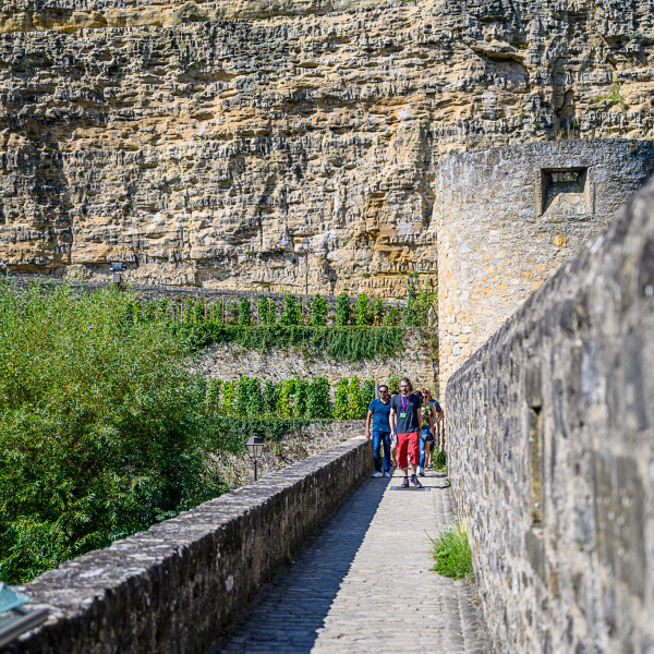 This part of the city wall provided protection for the inhabitants of the valley and is known as Wenzel wall. It connects the so-called Lower town and the Rham Plateau to the city’s defence ring. Originally 875 meters long, the wall comprises 37 towers and 15 gates. Wander back and forth until you reach the riverbank, through the medieval tower of the “Stierchen”, for an extra muros view of part of the ring wall.