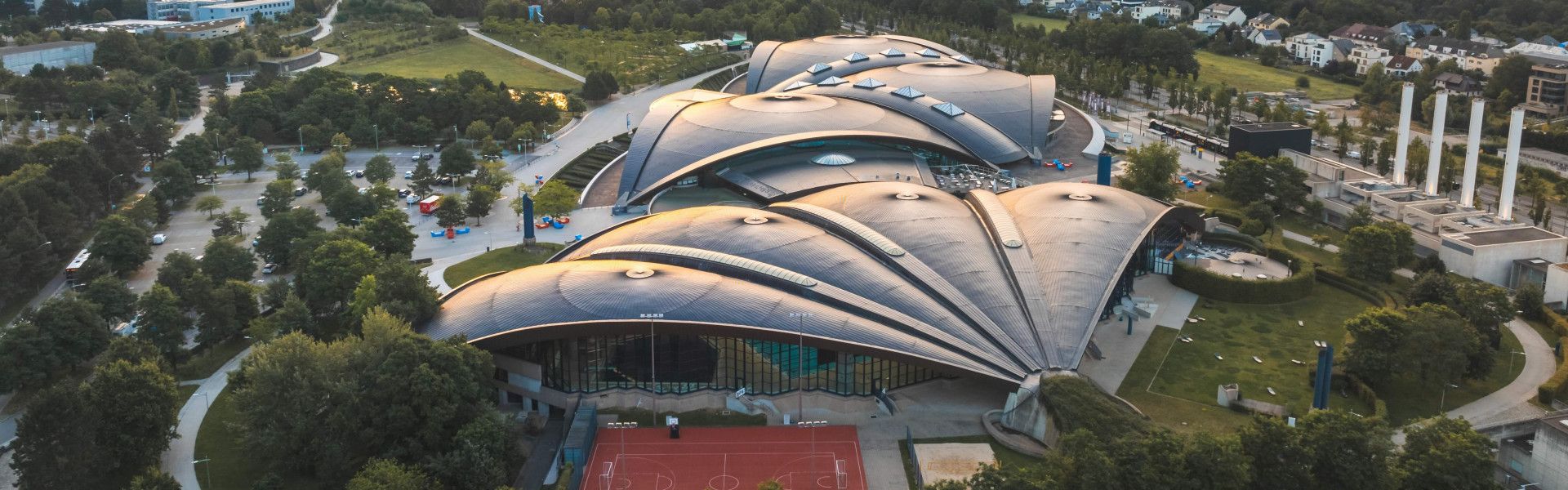 In 1982, the olympic swimming pool opened its doors. The striking shell-shaped roofline is reminiscent of a seashell, and is made of spans of pre-stressed concrete.