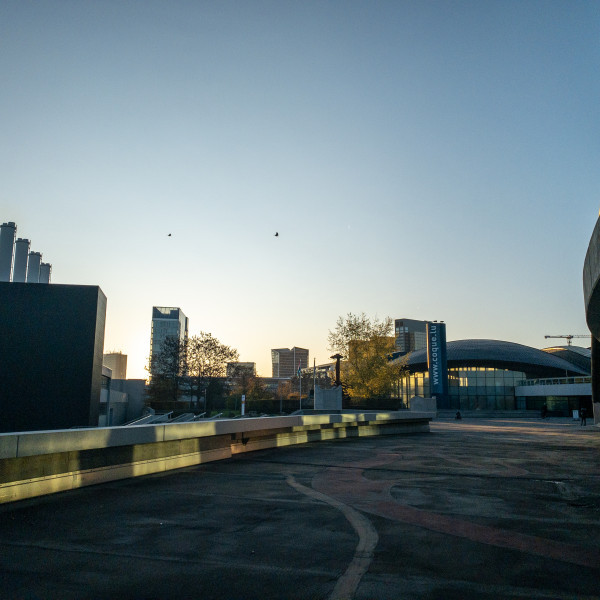 The Coque also hosts 2 restaurants, a three star hotel and a wellness center, as well as a climbing wall.