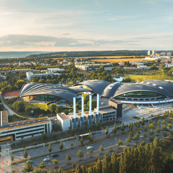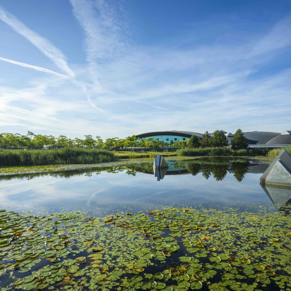 The architect Roger Taillibert (1926), has transposed the concept of sporting performance to technical expertise and architectural expression. With the swimming pool extension undertaken by the same architect in 2002, the Centre National Sportif et Culturel ("d'Coque") was created.