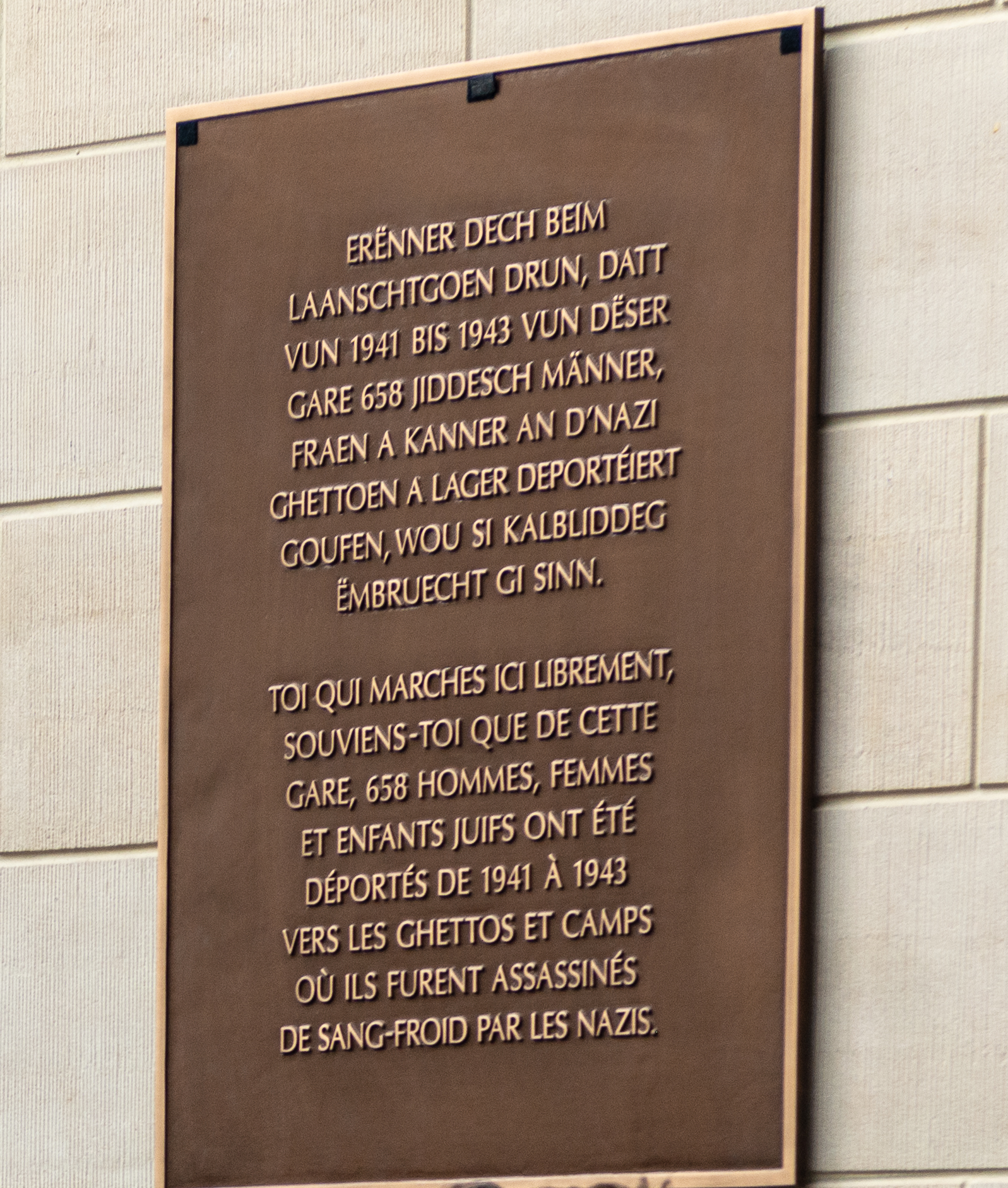Of the almost 4000 Jewish residents of Luxembourg at the beginning of the war, only about 60 were still living in Luxembourg in so-called “mixed marriages” at the end of the war. On 10 May 1940, the day of the German invasion, several hundred Jewish families had already fled to France and Belgium. When the racial laws and other anti-Jewish measures were introduced in September 1940, there were still about 1800 Jewish people living in Luxembourg. That is when the emigrations and, from 16 October 1941, the deportations to the East, namely to the concentration and extermination camps began. A total of 658 persons of Jewish origin were deported directly from Luxembourg to the East. 44 of them survived the Shoah, which corresponds to a survival rate of 7%.
