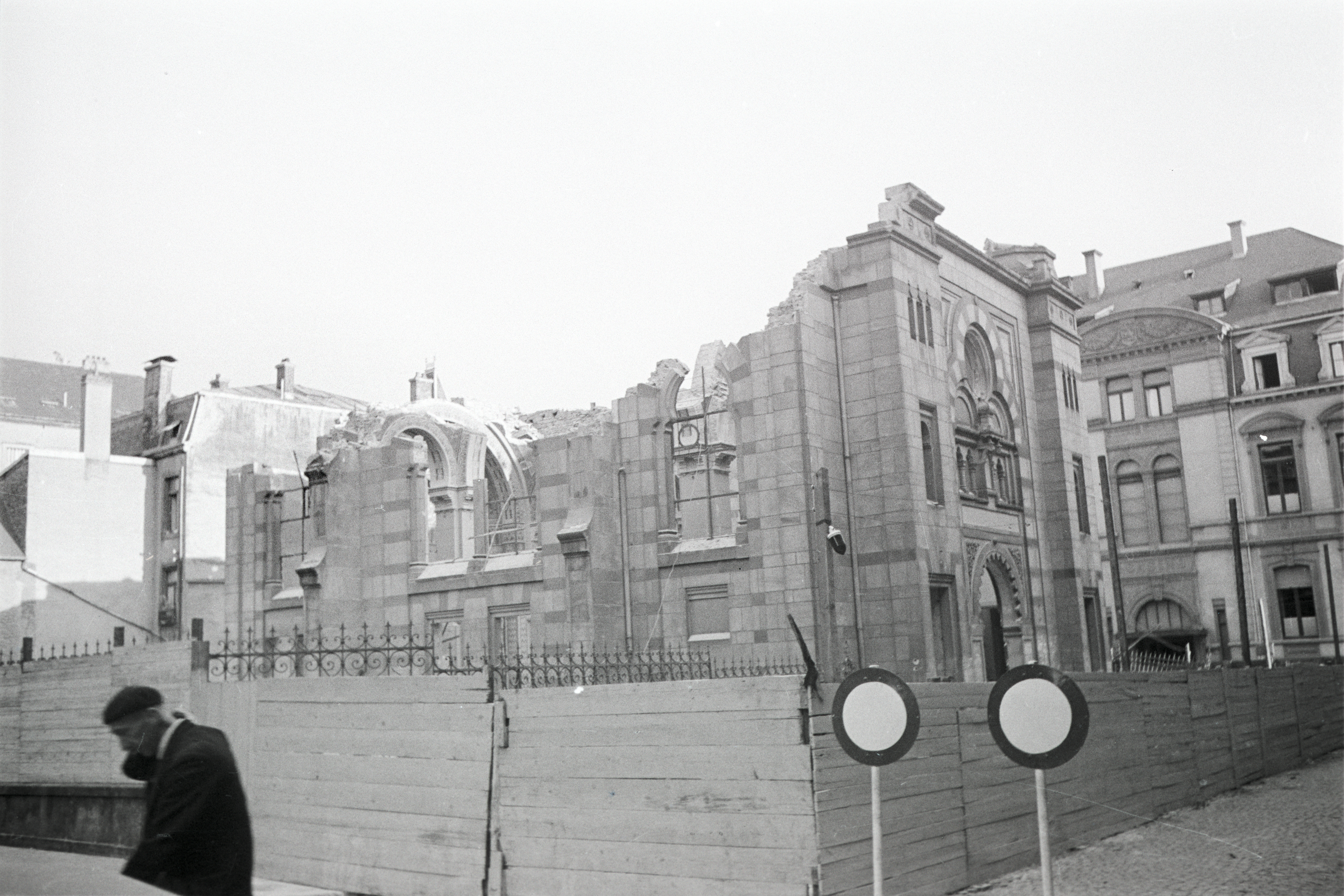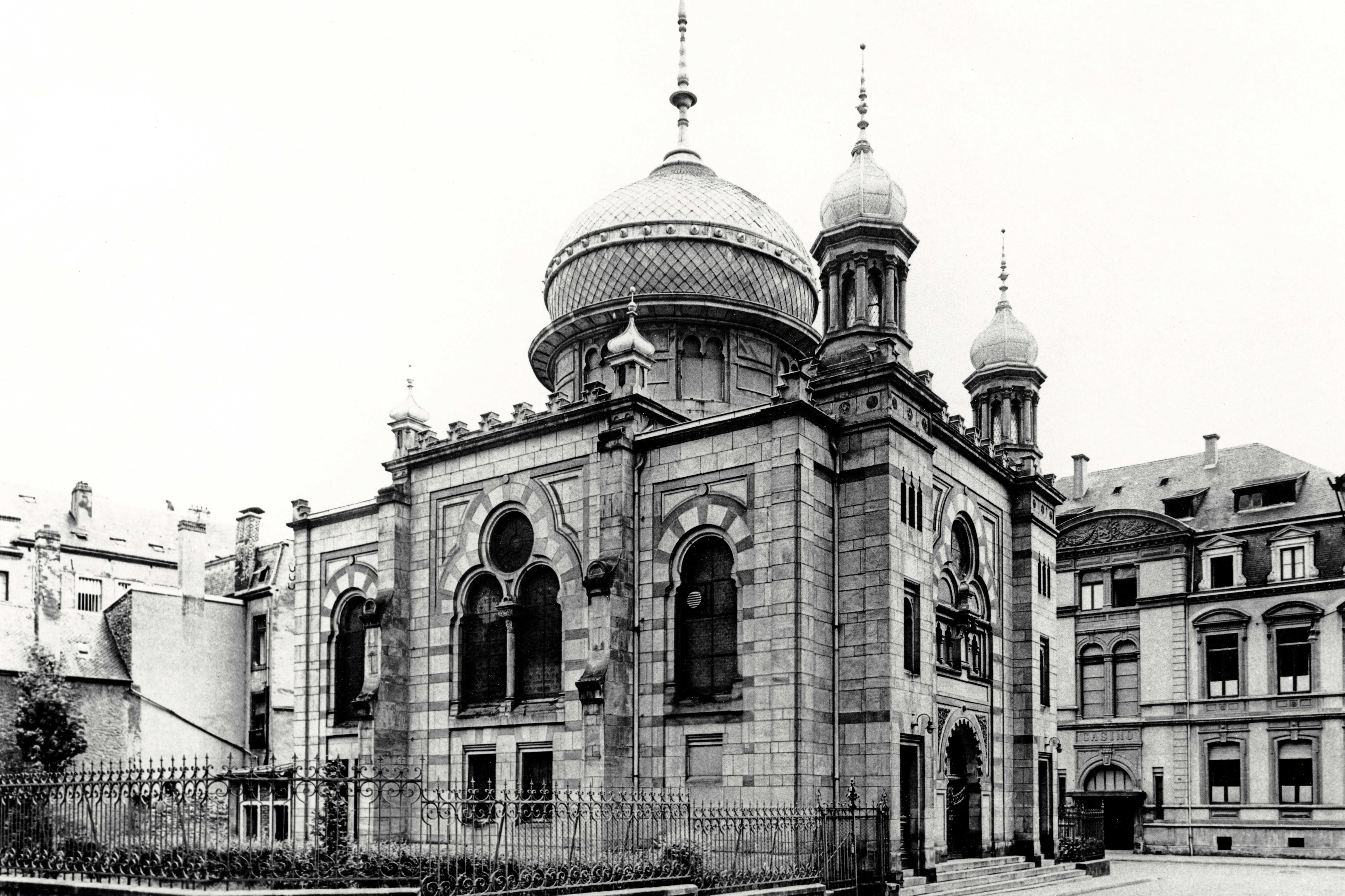Luxembourg's first synagogue since expulsions of Jews in past centuries was inaugurated in 1823 and was located near the "Kaddish" Shoah memorial, inaugurated in 2018. It was replaced by the much larger synagogue opened in 1894 near Aldringer Square, opposite the Casino building on Rue Notre-Dame. This synagogue was demolished on the orders of the Nazi occupation forces between August and October 1941. Before that, it had been the target of anti-Semitic attacks several times: even before the invasion of German troops in May 1940, the building had been smeared with swastikas and anti-Semitic slogans in September 1938. At the beginning of the occupation, the windows of the synagogue were smashed several times. This meant that even Wehrmacht soldiers had to guard the synagogue for several weeks. After a failed arson attack by unknown people on 28 February 1941 failed, the synagogue was stormed during a service on 9 May 1941 by members of the Stosstrupp of the Volksdeutsche Bewegung - a Luxembourg Nazi organisation. An attack one week later on Rabbi Dr. Serebrenik in the open street by local Nazis was used as a pretext by the Germans to have the synagogue demolished for good. The search for a company that could be commissioned with the demolition work proved more difficult than expected. Eventually, a bid from the Lucius company was received, which at 21.000 Reichsmarks was the cheapest of two offers. In autumn 1941, the demolition work was largely completed. The remaining stones are said to have lain on the site for several years, leading to the false assumption that the demolition stretched from 1941 to 1943.