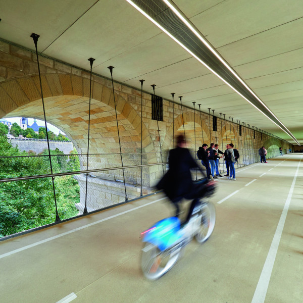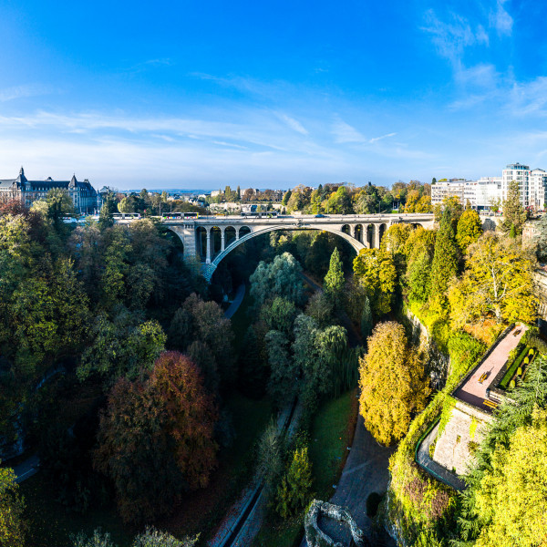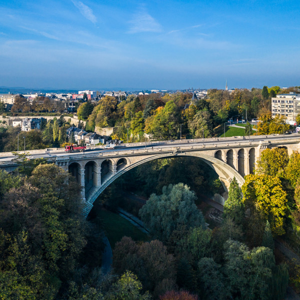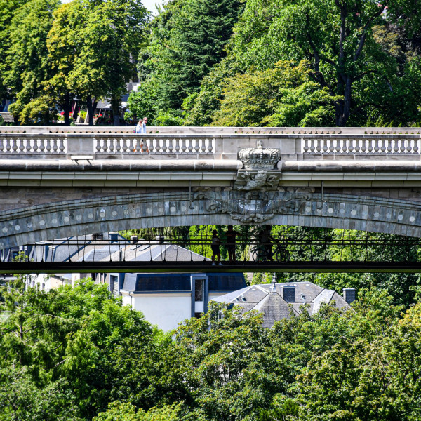 Also called New Bridge, it was erected between 1900 and 1903 during the rule of Grand Duke Adolphe. This event was followed with great interest from abroad, because the bridge had the biggest stone arch in the world up to then. The big double arch spans more than 85 metres across the Pétrusse valley at a height of 42 metres, and a total length of 153 metres.
