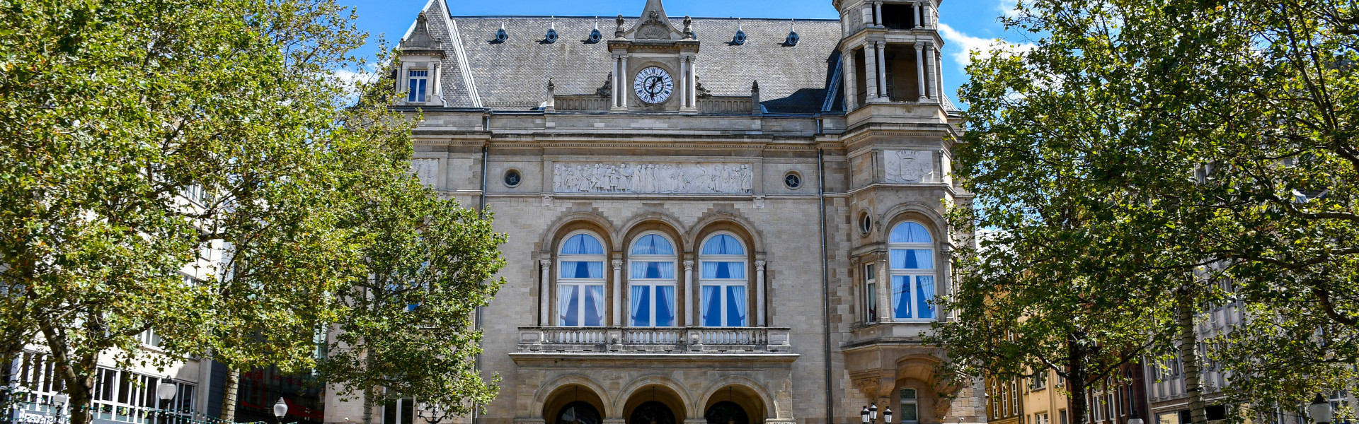 The generally named Cercle Municipal is an administrative building with several festival halls. From 1953 to 1969 the European Community for Coal and Steel used it as a venue for meetings and conventions. On the front a unique frieze depicts the scene where Countess Ermesinde hands over the char ter of freedom to the citizens of Luxembourg in the year 1244. A bridge connects the City Palace with the new sociocultural meeting centre "Le Cité". Together they form the culture and conference centre "Cercle Cité".