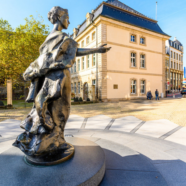Among the famous statues in Luxembourg, the statue of Grand Duchess Charlotte on Place de Clairefontaine was designed by the french sculptor Jean Cardot. On 29th April 1990, the 2.75-metre high bronze statue was officially inaugurated in the presence of the Grand Ducal family. Grand Duchess Charlotte (1896-1985), who was very popular with the Luxembourgers, ruled from 1919 to 1964.