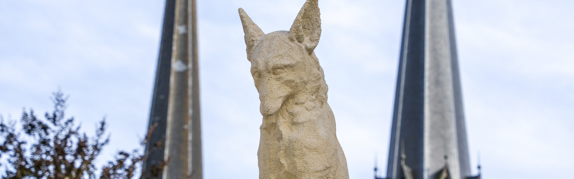 Rodange is best known for his work Renert, a Luxembourgish fable inspired by Goethe's epic. Unveiled in 1956, the monument depicts Rodange in a thoughtful pose, crowned by a character from his famous work: the cunning fox Renert.