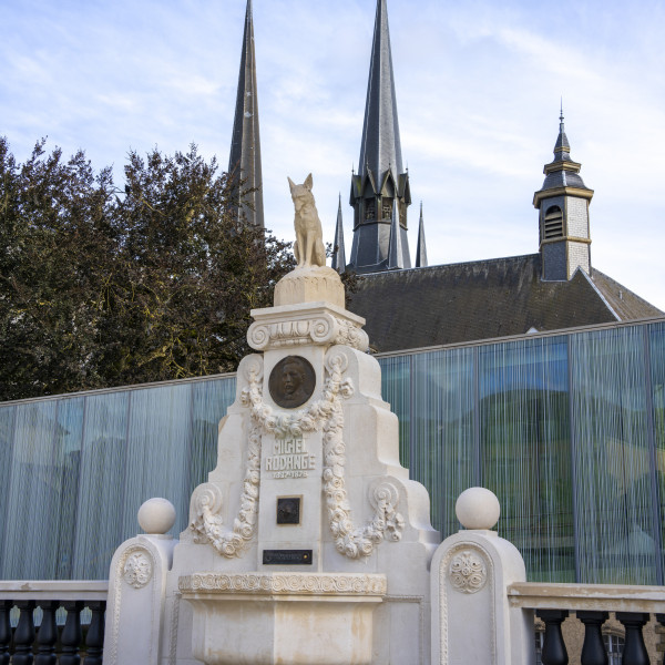 The Michel Rodange Monument is located at Place Guillaume II and honors the renowned writer Michel Rodange (1827–1876).