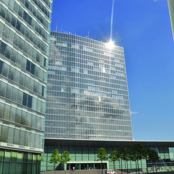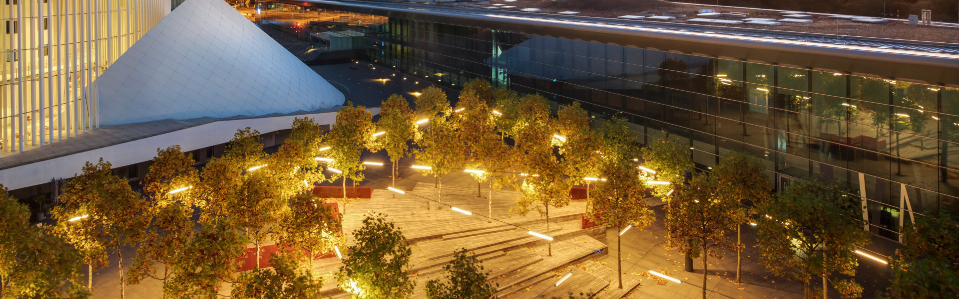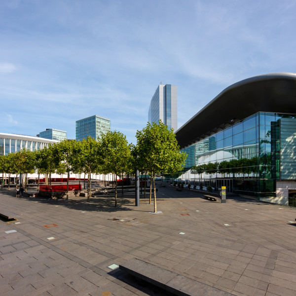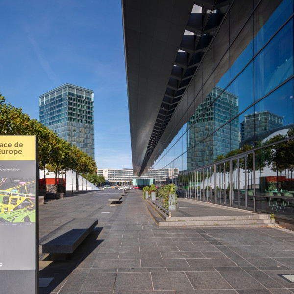 The triangular area of the Place de l'Europe (which was previously an open-air car park at the foot of the Alcide De Gasperi tower building) was designed by the Catalan architect Ricardo Bofill in 2004. Access to this highly symbolic, black-paved area, which celebrates the setting of the European Institutions in Luxembourg, is up stately steps from Avenue J.F. Kennedy.