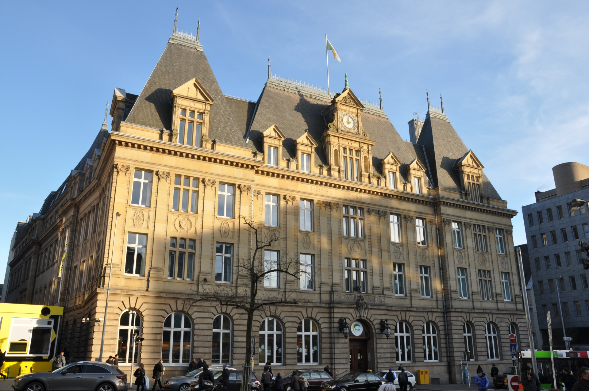Since 1869, the post office of the Upper Town was located in the former barracks of the Prussian garrison "beim Piquet." Given the rapid development of the post, an enlargement of the office was quickly necessary. From 1908 to 1910, the architect of the State Sosthène Weis (1872-1941) erected this building in the Renaissance style. Over the years some modernizations have regularly taken place until 2018, when the post office left that building.