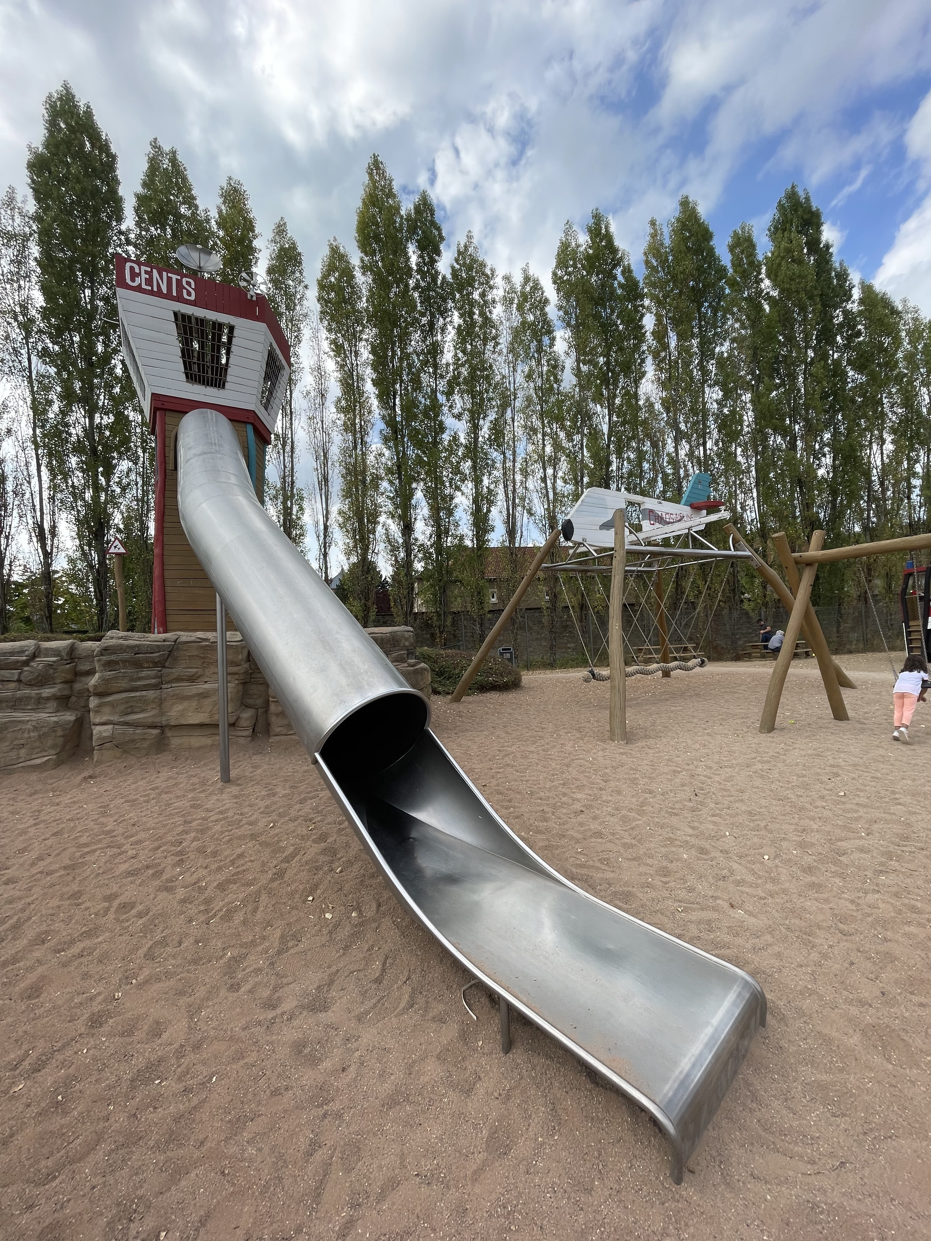 Located in Cents, this playground is like no other. The theme is airplanes, airports and traveling by plane. Children will appreciate the big slide, the fire truck, the big space to run free and the theme of the playground which boosts encourages role play, phantasy, and creativity.
