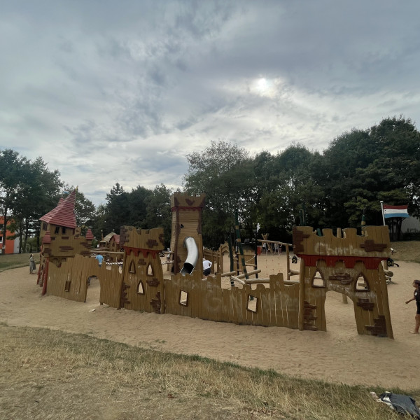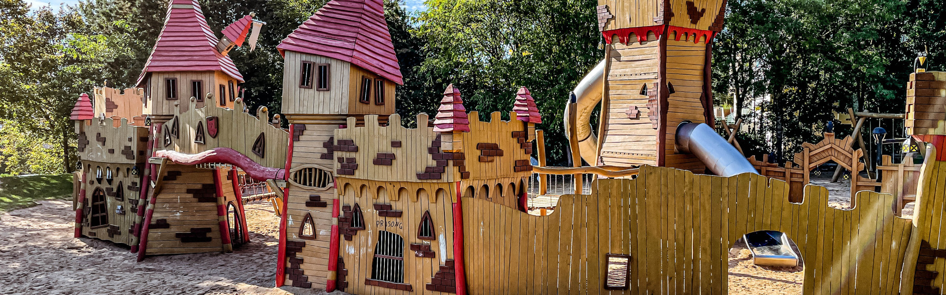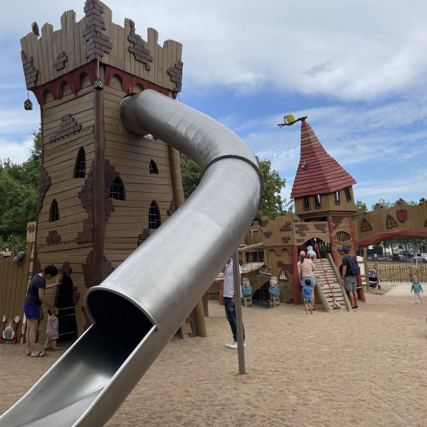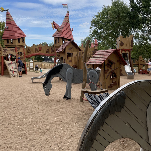 Castles and princes, carriages and princesses, a little fairyland accessible to all, with nice facilities, swings, slides, and happy children running around while parents can enjoy their discussions seating sitting on the benches.