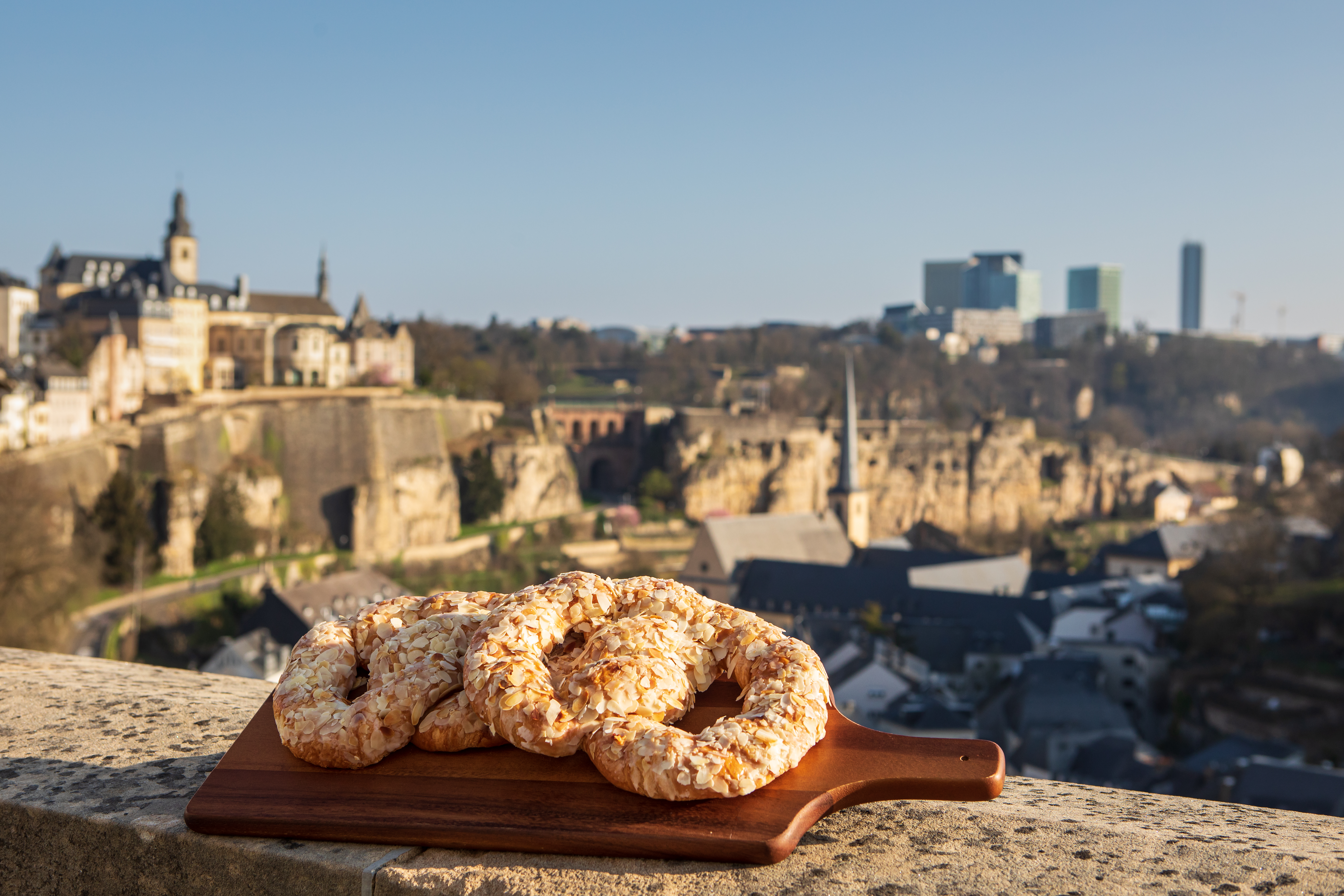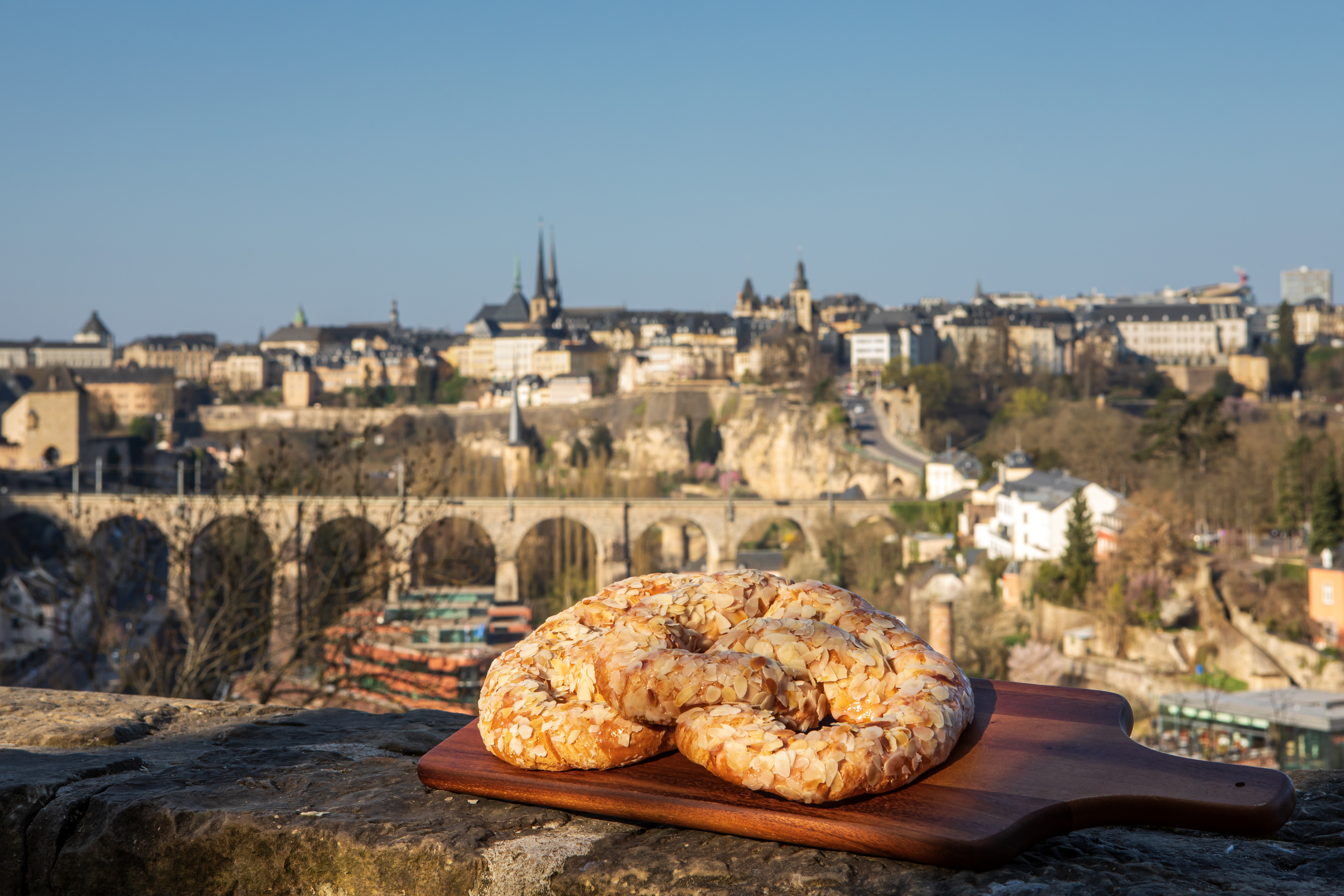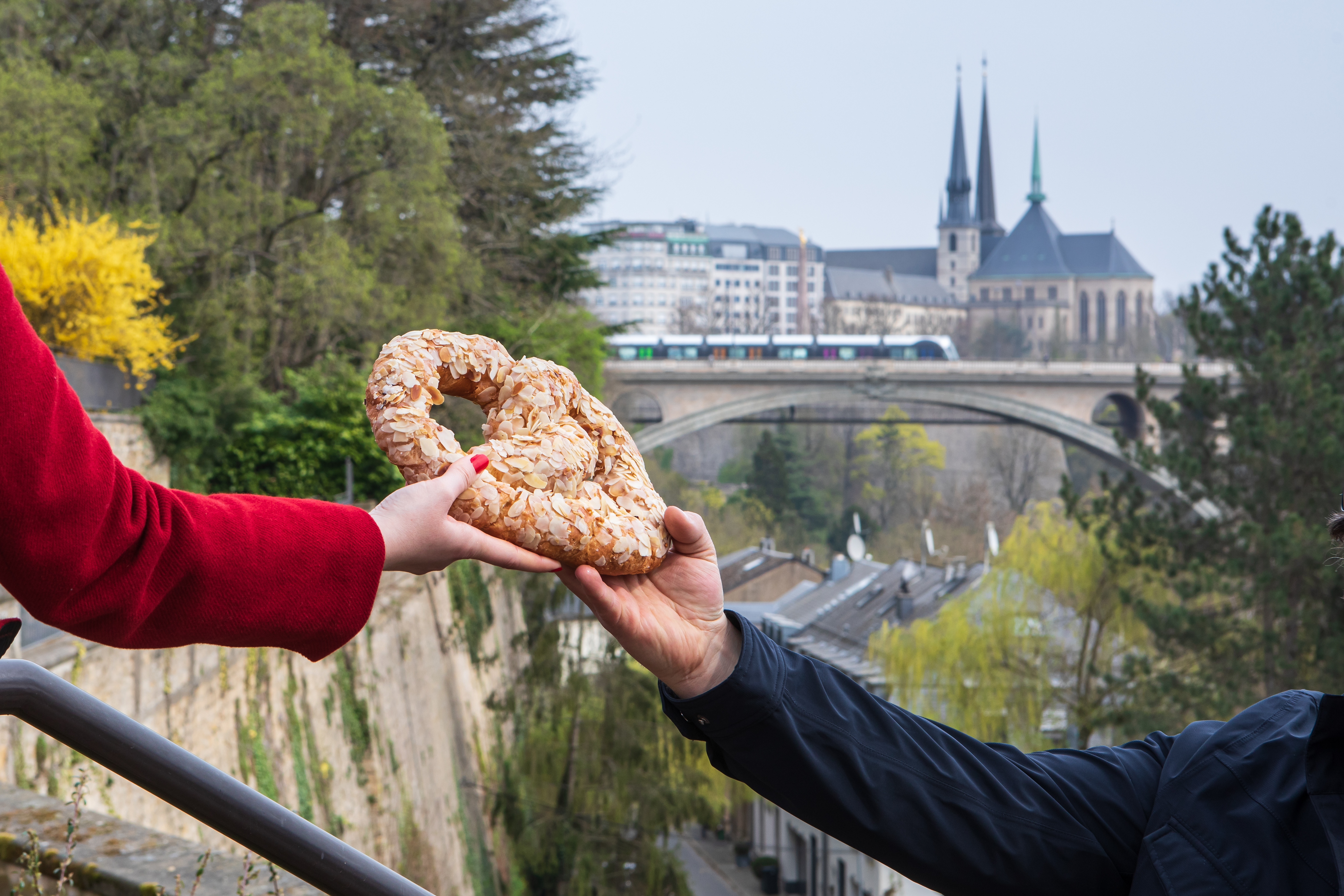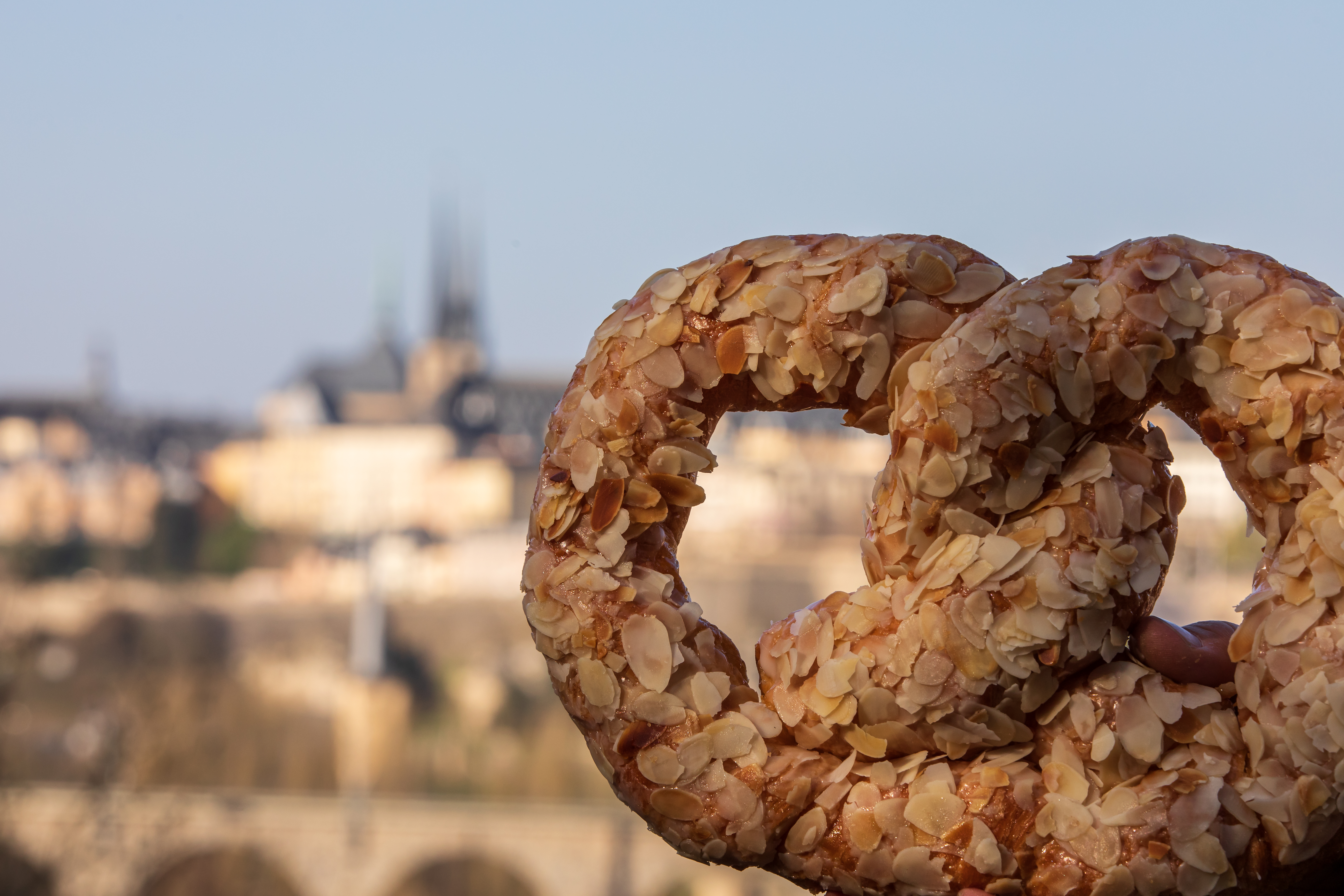 Pretzel Sunday, or ‘Bretzelsonndeg’ as locals call it, is a celebration of love taking place on the 4th Sunday of Lent. Traditionally, a man should offer a pretzel (a sweet puff pastry with fondant icing and almonds) to his sweetheart as a token of his love. If the woman reciprocates the feelings, she will in return offer him an egg on Easter day. In the unfortunate event that she is not interested, the man will be given an empty basket, hence the Luxembourgish expression “De Kuerf kréien” (to be given the basket). In leap years, the roles are reversed: women have to offer their sweetheart a pretzel while men have to pick between an egg or a basket.