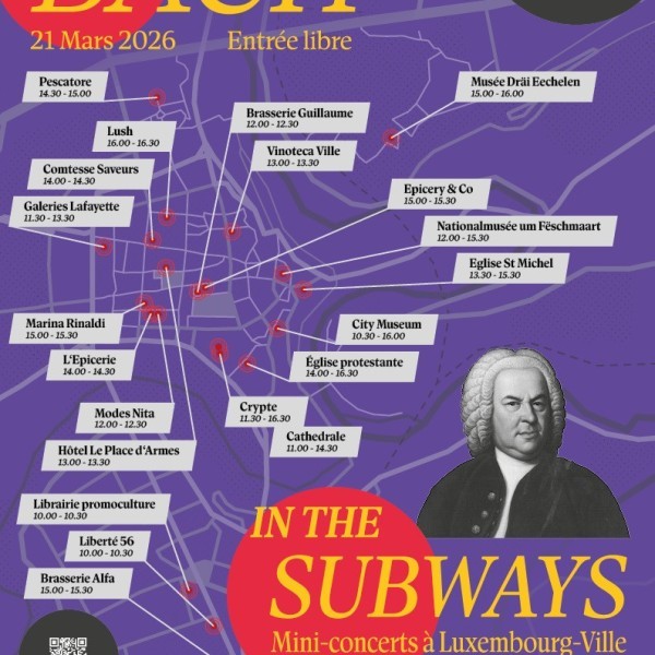 On Saturday, March 21, 2026, from 10:00 to 17:00., INECC and Bach Vereenegung Lëtzebuerg ASBL are organizing free mini-concerts in churches and unusual venues in Luxembourg City and Kirchberg.