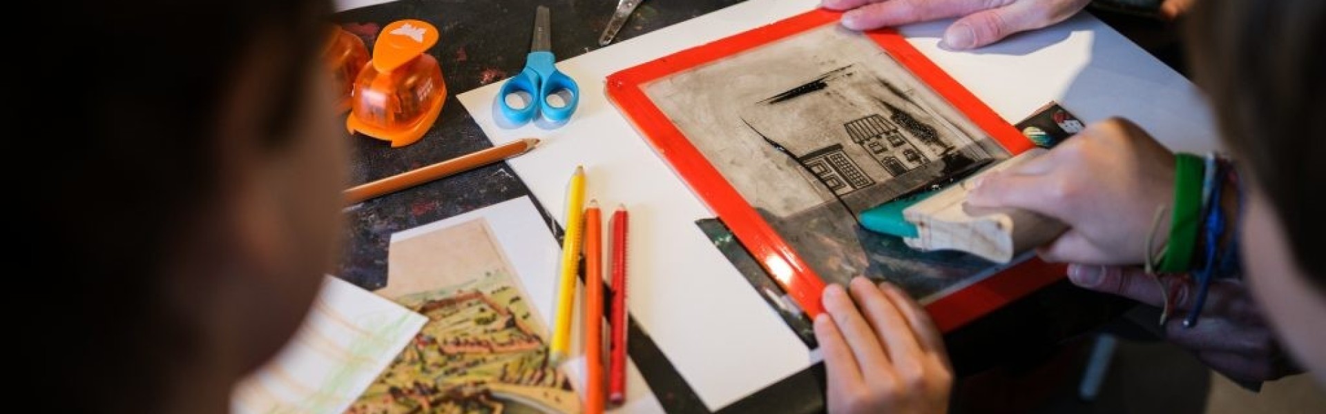 This journey is followed by a creative workshop where you will design your own vision of the city by experimenting with different mixed media techniques. Once your artwork is ready, it’s time for a final magic touch through screen printing, featuring original motifs by artist Simone Lazzaretti.