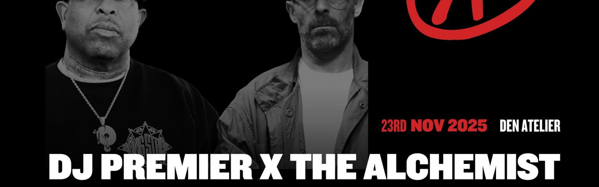 On Sunday, November 23rd, den Atelier welcomes two of hip-hop’s most legendary producers, DJ Premier and The Alchemist, for a night that promises to be nothing short of historic. From DJ Premier’s iconic work with Nas, Gang Starr, and Jay-Z to The Alchemist’s genre-defining beats for Mobb Deep, Freddie Gibbs, and Griselda, these Grammy-nominated titans have shaped the sound of rap for decades. Now, for the first time in Luxembourg, they join forces for an unforgettable live set: a rare masterclass in hip-hop culture, rhythm, and soul. Don’t miss your chance to witness greatness.