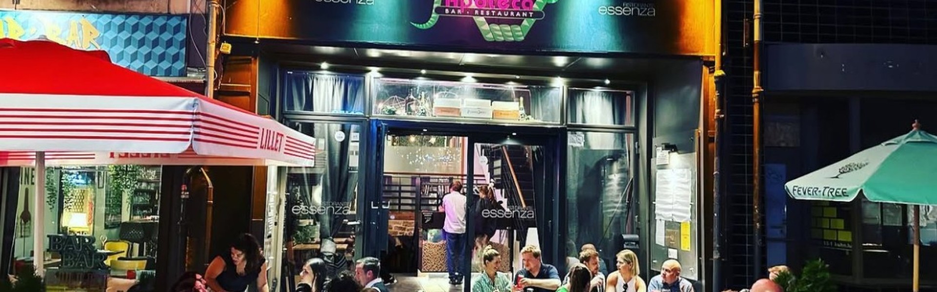 Dinner upstairs at restaurant Essenza, signature cocktails at BarBar, and live music at Apoteca — all in one place.