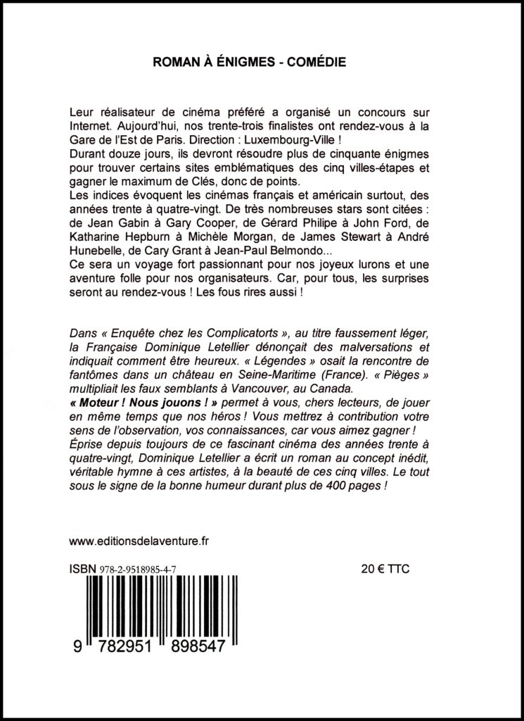 Dominique Letellier signera « Moteur ! Nous jouons ! » dont l’action se déroule en partie dans la capitale du Grand-Duché. Elle dédicacera aussi son dernier titre, « Aventures à Lausanne », paru en 2024. Après des surveillances réciproques, des filatures, ses héros qui n’auraient jamais dû se rencontrer orchestreront une mission commune d’infiltration à… Lausanne. Au bord du Léman, tous les adversaires ont la même devise : à malin, malin et demi ! Les rebondissements s’enchaînent alors jusqu’aux dernières lignes.