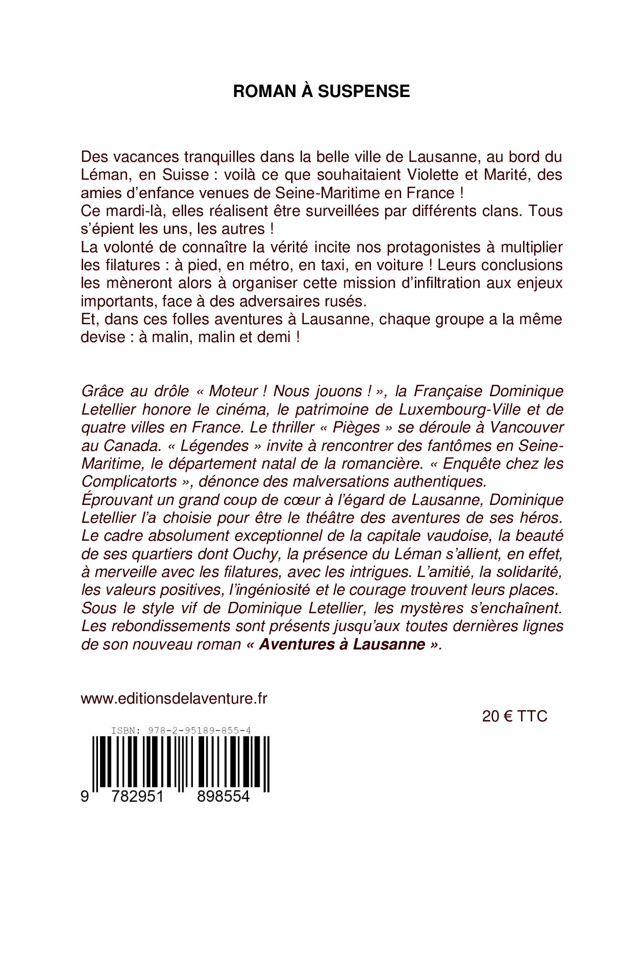 « Aventures à Lausanne » : ISBN 978-2-9518985-5-4 - 16 cm x 24 cm - 336 pages - 20 euros.