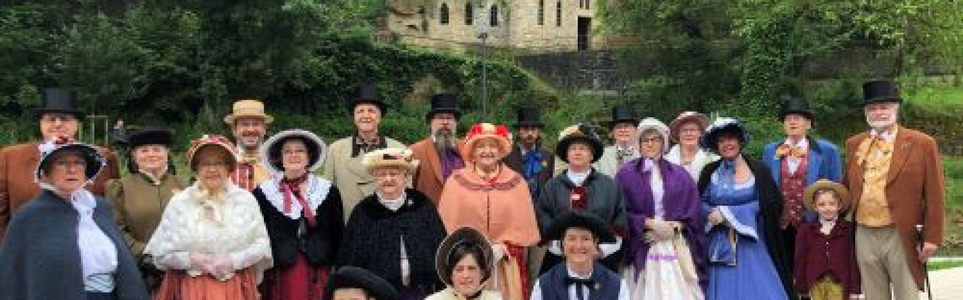 Groupe de chanteurs(teuses) en vêtements bourgeois des années 1820 à 1890.