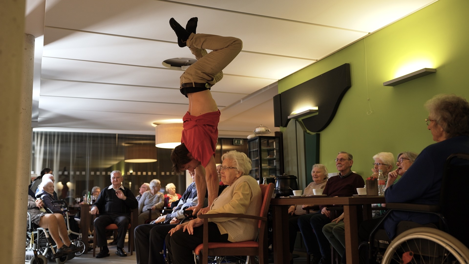 After delighting audiences at PICelectroNIC., Be Flat Company is back – but not at Rotondes! Instead, this performance takes place in a care home for elderly people, creating a unique meeting point between the residents and our regular audience. It’s live performance in a real living space, bringing contemporary circus directly to everyone’s doorstep.