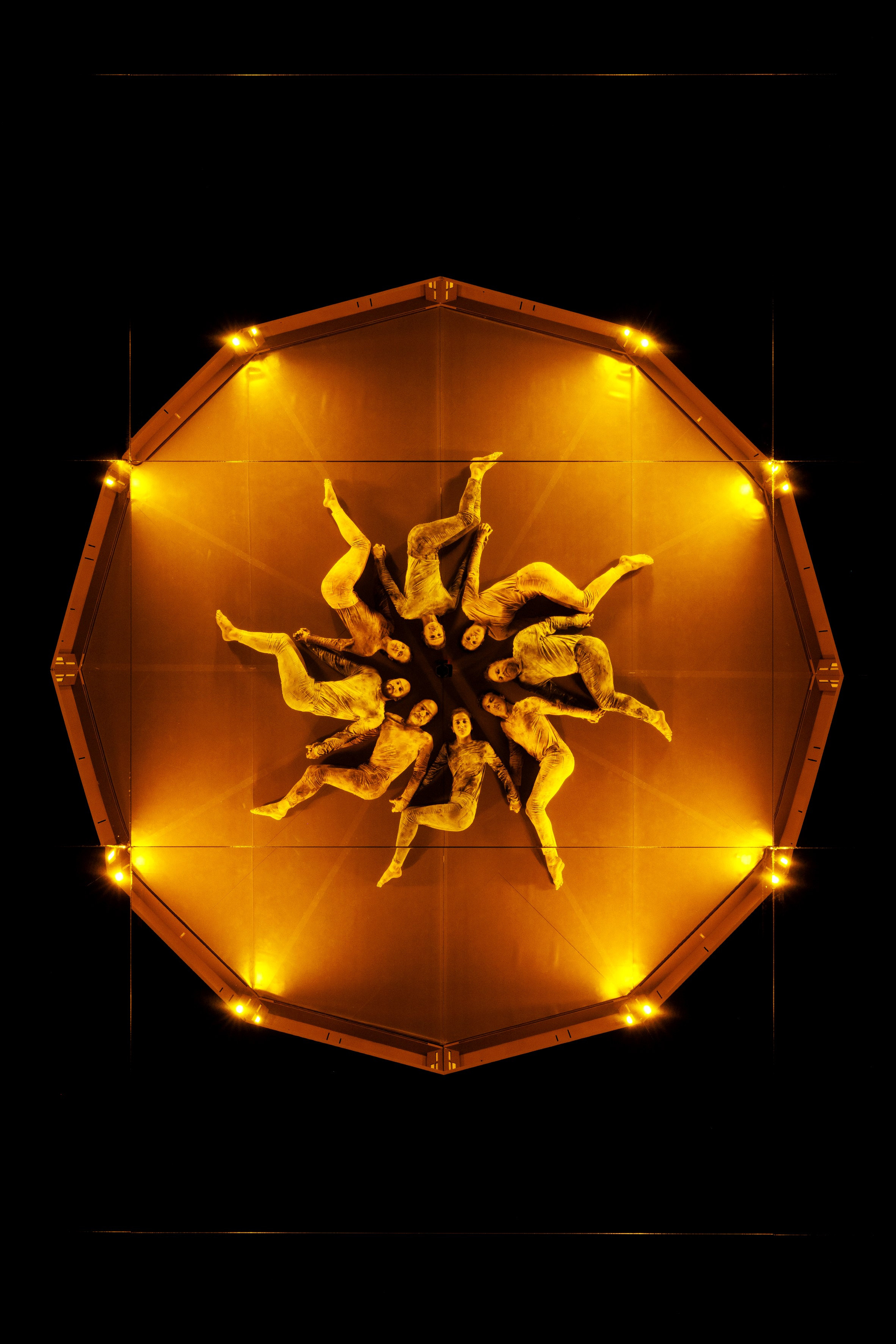 .In Mirkids., dance becomes geometry, and the stage becomes a circle of dreams. Eight dancers perform within a circular structure while the audience lies surrounding its edge. Everyone gets the perfect view of this celestial spectacle unfolding above them. The hypnotic, ever-changing kaleidoscope of bodies in motion is accompanied by an original soundscape designed to heighten every sensation.