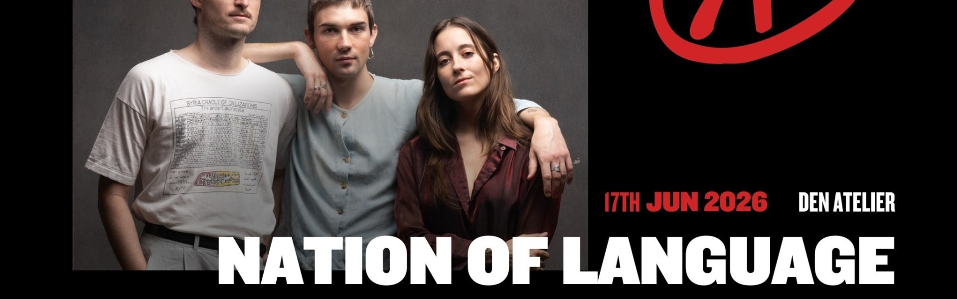 Brooklyn synth-pop trio Nation of Language bring their shimmering, nostalgic sound to den Atelier this June. Led by Ian Richard Devaney alongside Aidan Noell and Alex MacKay, the band has built a cult following with emotionally charged songs blending post-punk energy and classic ‘80s-inspired electronics. Since emerging in 2016, they’ve earned critical acclaim for albums like Strange Disciple and Dance Called Memory, and are renowned for hypnotic live performances that balance melancholy, melody, and dancefloor pulse.