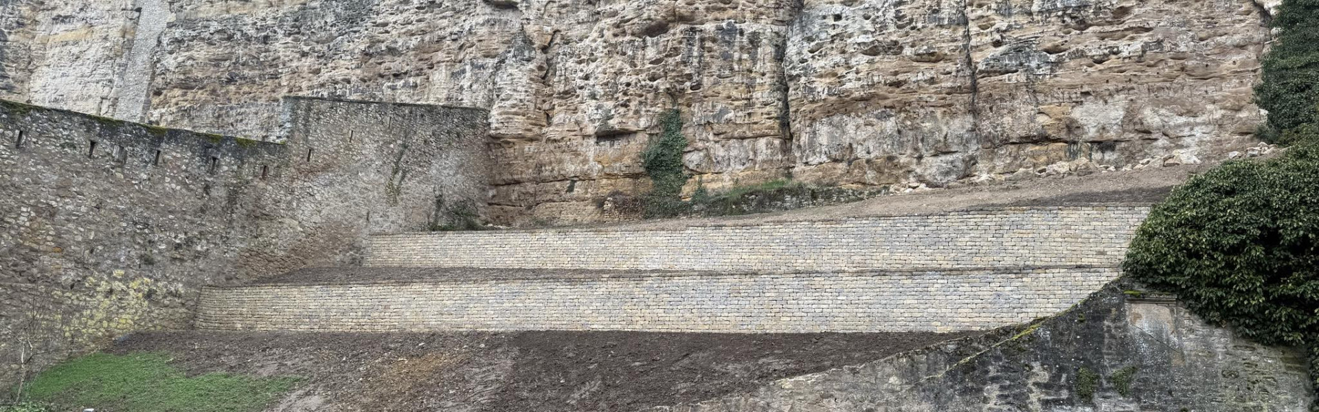Dans le cadre de la LUGA, la partie « extra muros » a été reconstituée dans son état original, avec la reconstruction des murs de soutènement en mâçonnerie sèche. Cet aménagement permet également une mise en valauer de ce site emblématique de la ville, qui a tant inspiré d’artistes.