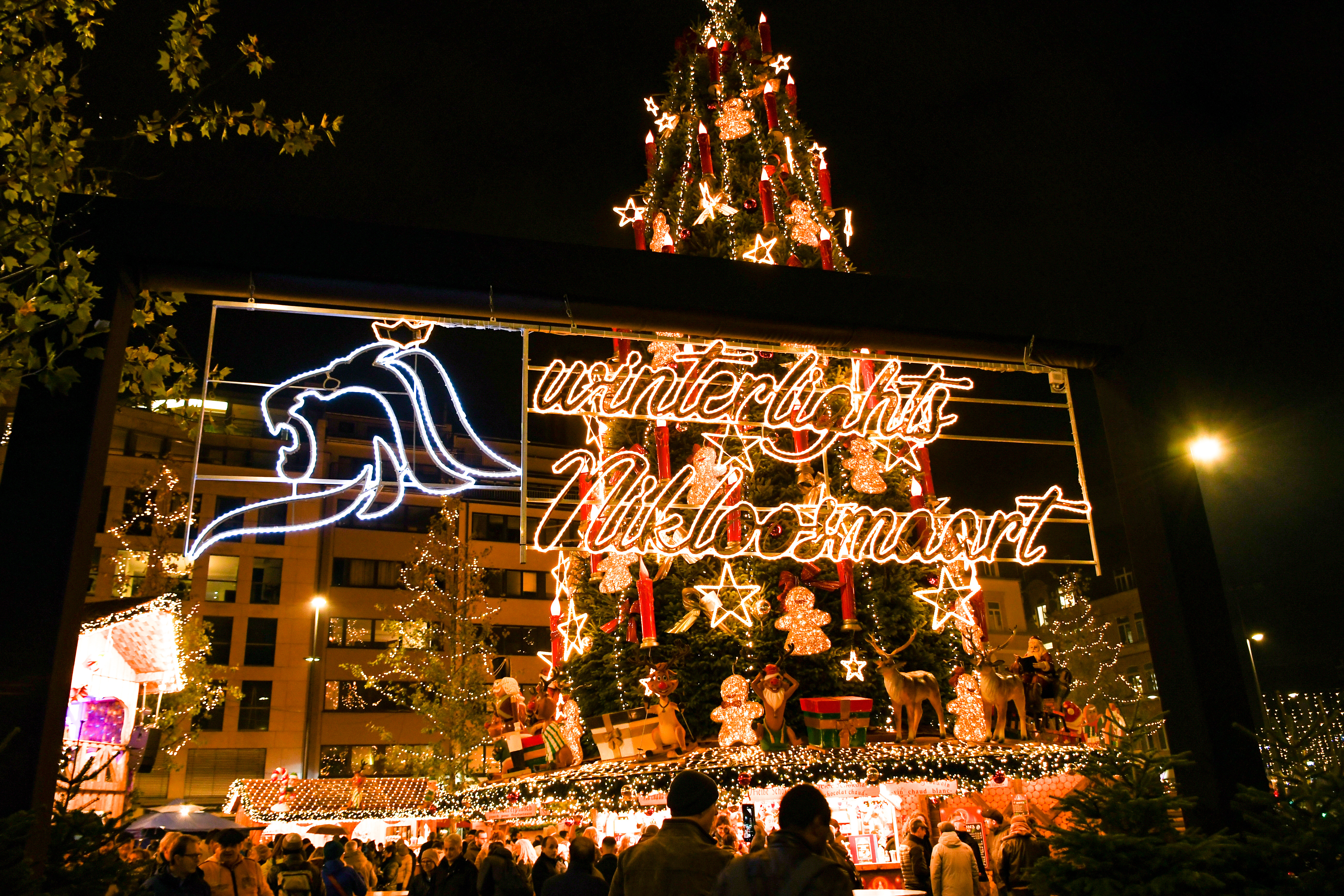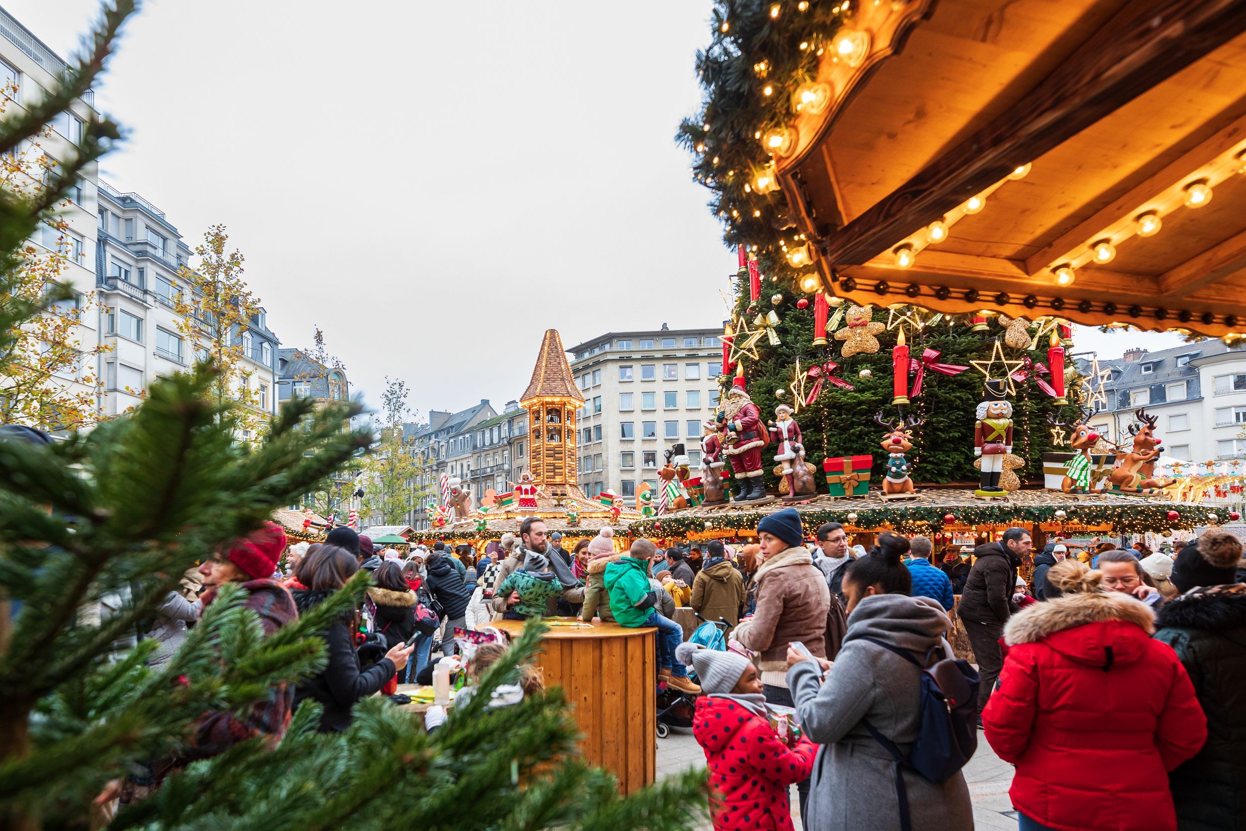 The Niklosmaart at Place de Paris is a delightful part of Luxembourg City’s festive season. Centrally located, the market features beautifully decorated wooden chalets serving both sweet and savoury treats — from mulled wine and hamburgers to Gromperekichelcher (potato pancakes), soups, sausages, waffles, churros and pretzels. Visitors will also find a wide range of Christmas merchandise, including handmade Advent wreaths, decorations, textiles and toys. A historic swing‑carousel is available for children and adults, and there is an extensive live music and entertainment programme on stage.
