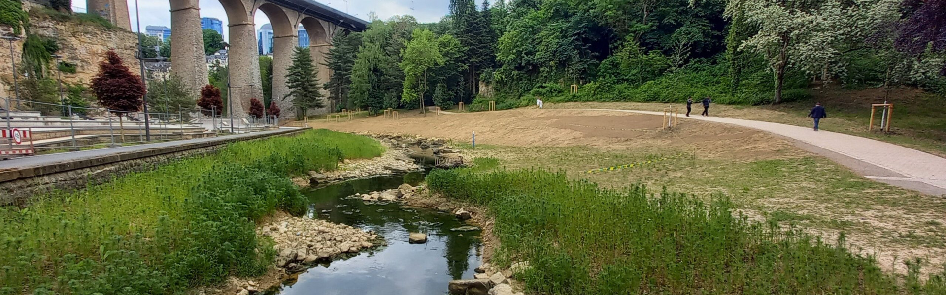 The renaturation of the "Pétrusse" in Luxembourg is an ambitious program aimed at restoring and improving the natural environment of its valley. The main objectives of the project are: improving biodiversity by creating natural conditions for the watercourse, which will encourage the return of local fauna and flora; reducing the risk of flooding by allowing the water to flow more slowly; enhancing the quality of life by transforming the valley into an attractive green space with hiking trails, bike paths, playgrounds, and recreational facilities; adapting to climate change by improving the ecological balance and increasing the valley's resilience to extreme weather events. The first phase of the project, carried out between 2020 and 2024, has already shown positive results, with the return of aquatic life and a notable improvement in the ecosystem. The second phase, which will begin in the spring of 2025, will focus on extending the work towards Hollerich.