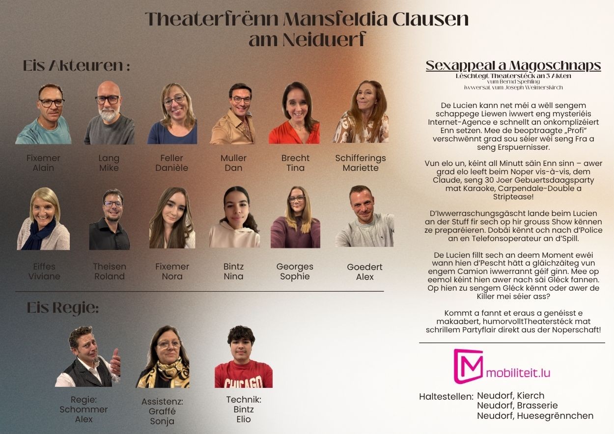 Kommt a fannt et eraus a genéisst e makaabert, humorvolltTheaterstéck mat schrillem Partyflair direkt aus der Noperschaft!