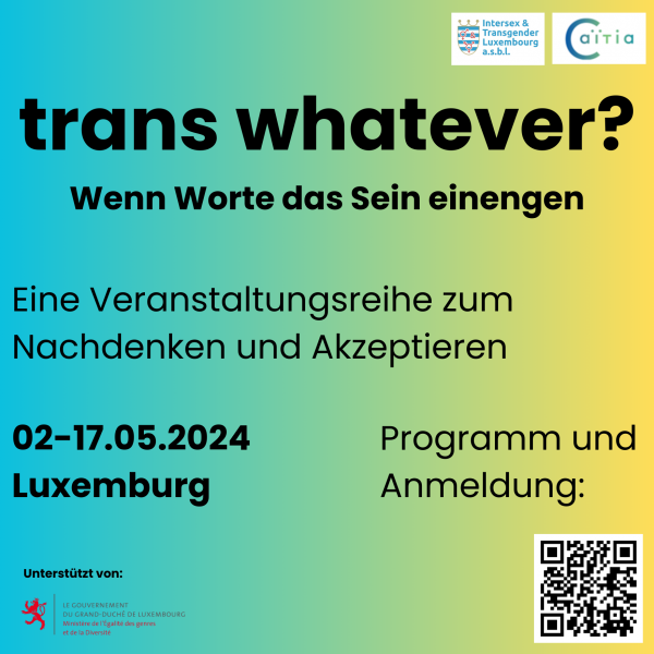 Based on initial research carried out in early 2024, this workshop seeks to open up a discussion regarding the experiences of trans people in Luxembourg who may experience racism and ethno-racial discrimination and/or whose citizenship may create access barriers in Luxembourg.