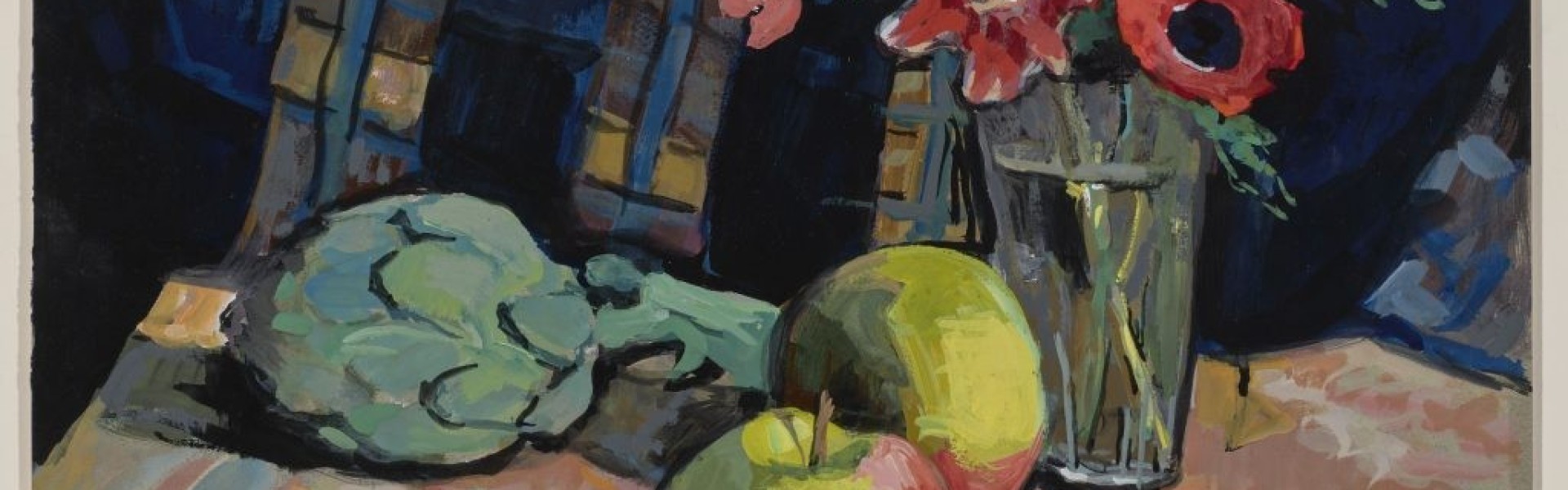 Adrienne Baudoin-d’Huart (1892–1992), Nature morte aux pommes et artichaut, Gouache sur papier © Les 2 Musées de la Ville de Luxembourg.