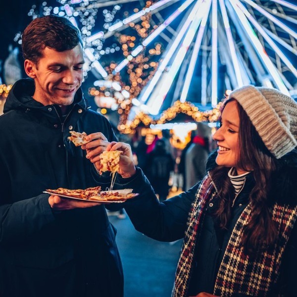 A standout highlight: a 13‑metre “golden Christmas tree”, a giant pyramid, a 32‑metre Ferris wheel, plus rides and trampolines for both children and grown‑ups.