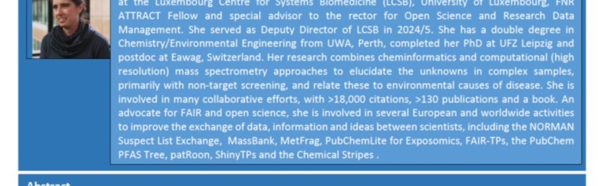 .This talk will take the audience on a chemical detective story, to show how researchers try to answer these questions and more. As with criminal investigations, this involves databases with fingerprints (i.e. mass spectra) of chemicals, other databases containing potential “suspects” without fingerprints. Further efforts are used to predict how chemicals might disguise themselves (aka transform) in the environment, making themselves harder to find, and whether they are more or less toxic after treatment. Several examples from around Europe and the world will be used to how our research in Luxembourg, together with national and international collaborators, can help fellow researchers answer many questions through the development of community resources, data sharing and a whole lot of joint detective work!