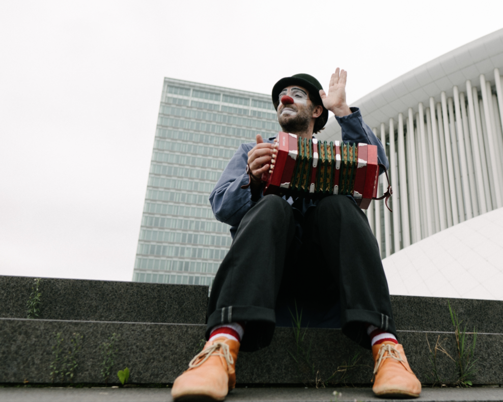 This is no traditional clown: no big shoes, no red nose. Instead, Joe reveals a sensitive and playful being, fully present in the moment. He breaks the fourth wall with ease and invites the audience into a space of shared feeling.