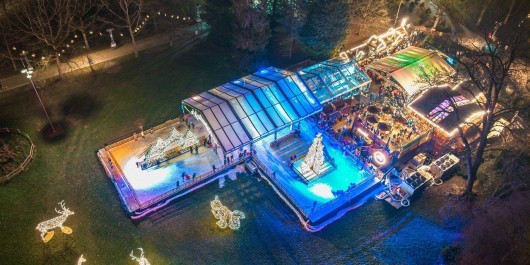 In the park surrounding the ice rink, festive lights and a giant heart symbol (12 m wide, 8 m high) enhance the enchanting ambiance.