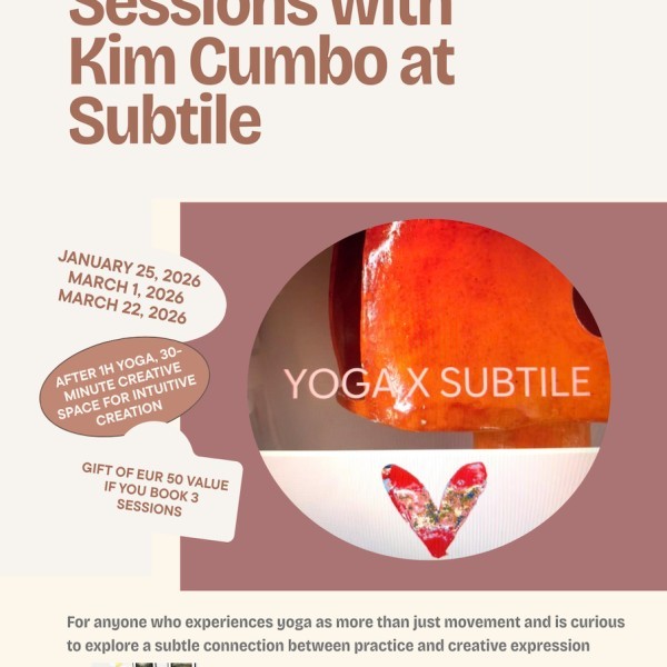 • Three-session series booked at once: €165 total + a wonderful gift of a curated goodies bag with selected offerings from Subtile and KIM’s yoga work for a value of EUR 50 received at the 1st course attendance.